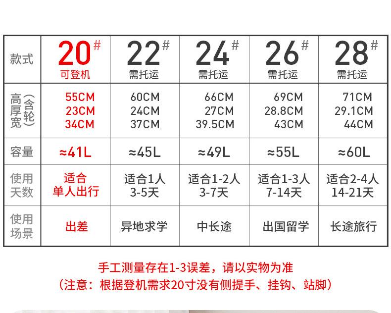 20inch [37 partitions + front hook + folding cup holder + usb charging interface], 22inch [37 partitions + fro...