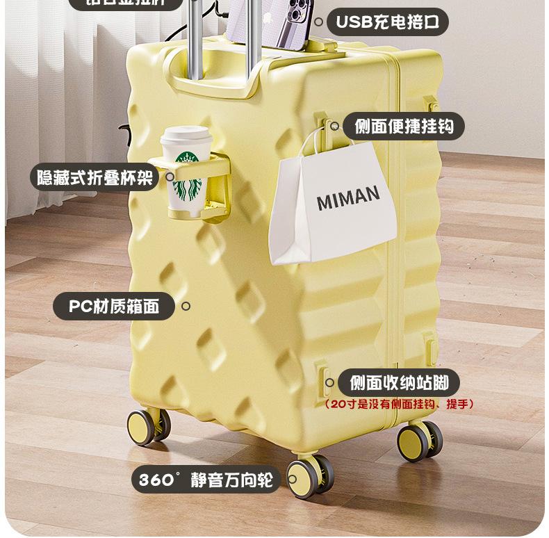 Mala de Grande Capacidade para Mulheres 2024 Mala 20 polegadas Bagagem de Bordo Trolley Senha Rodas Universais Carregamento USB