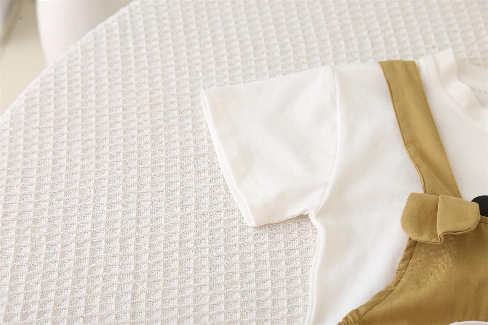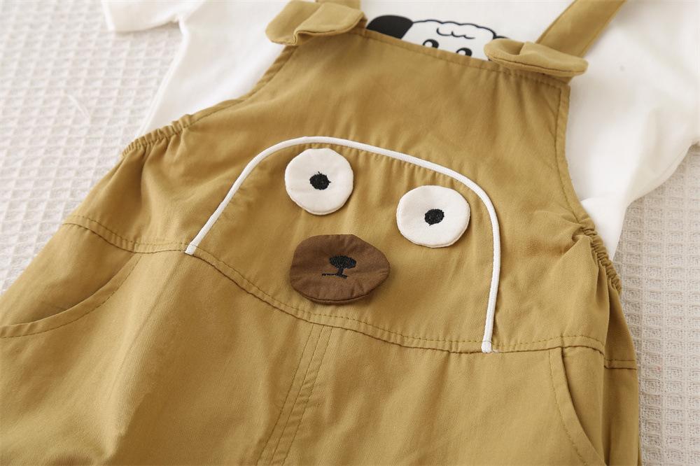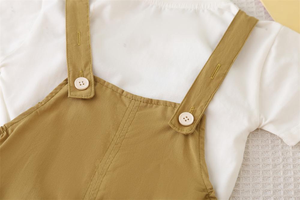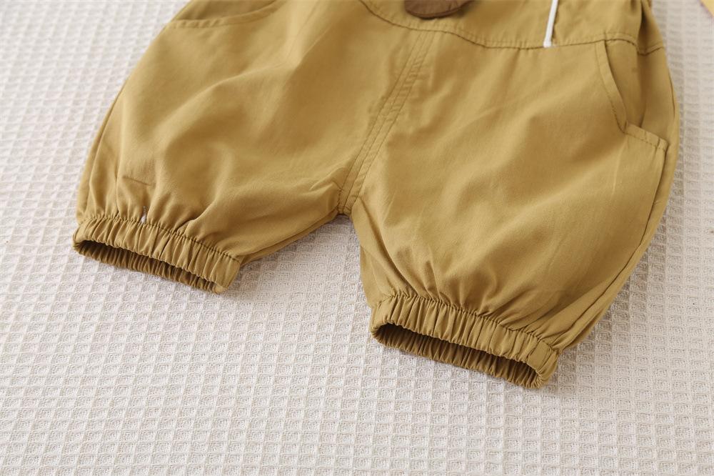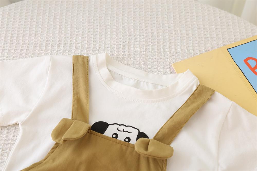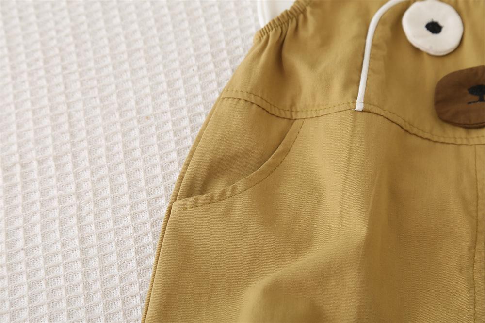 Short-sleeved big-eyed dog overalls suit dark khaki, Short-sleeved big-eyed dog overalls suit beige, Short-sle...