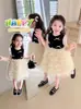 Verão Novo Saia Bolo para Meninas Saia Elegante Sem Mangas para Menina Laço Azul Estilo Coreano Moda Saia de Princesa