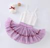 Saia Tutu Roupa de Bebê para Menina Vestido Verão Saia Convexa Regata Camisola para Menina Conjunto de Duas Peças