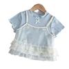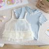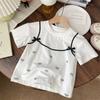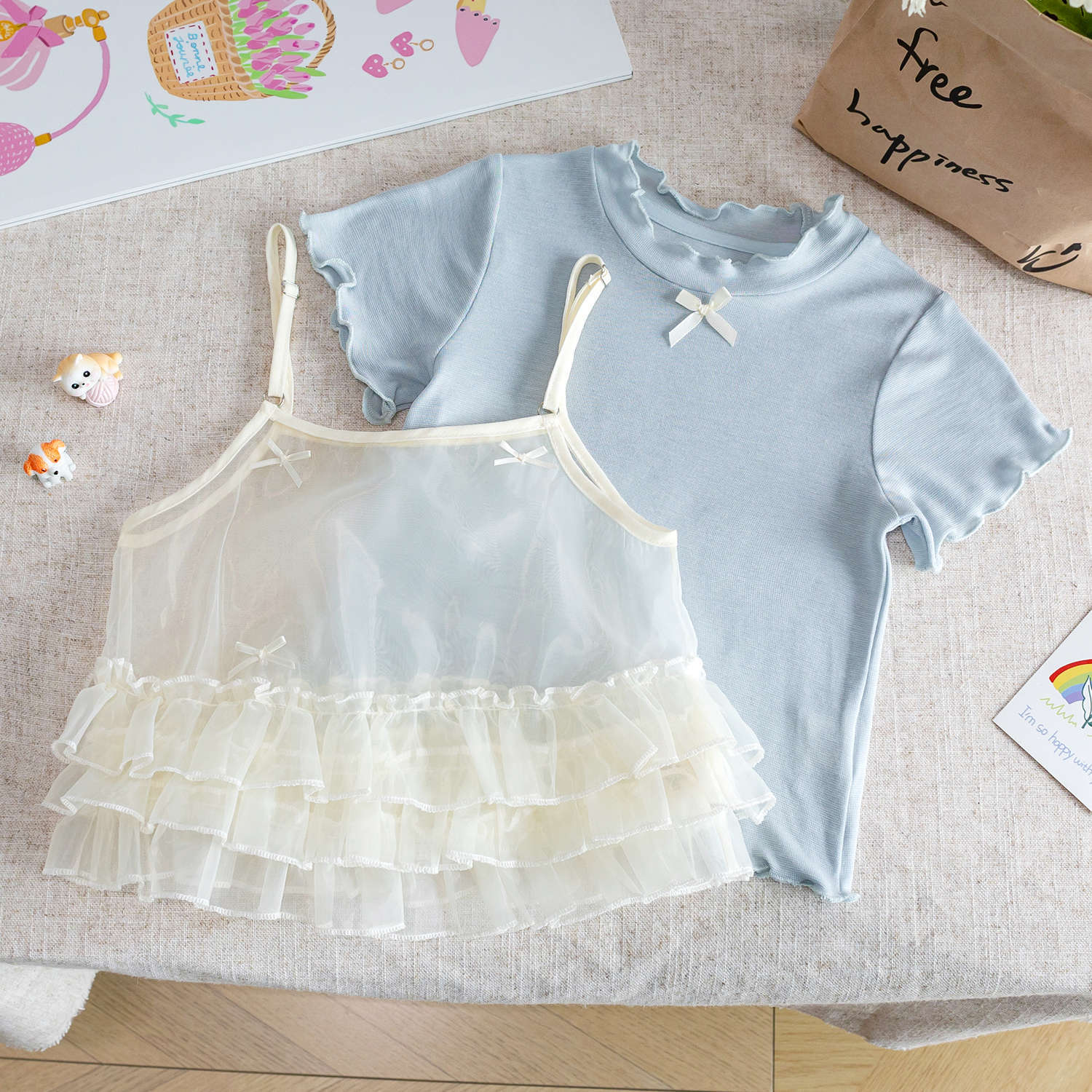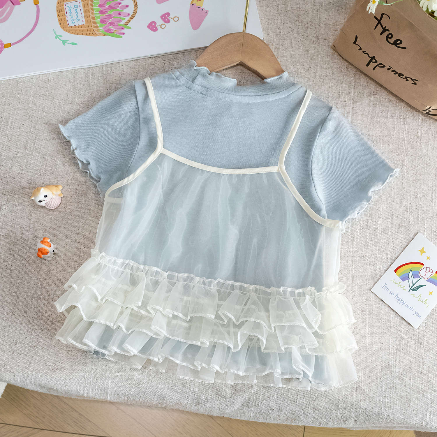 Conjunto de Verão para Meninas 2025 Novo Elegante Fashionável Roupas Infantis Bebê Meninas Verão Camiseta de Manga Curta Conjunto de Duas Peças