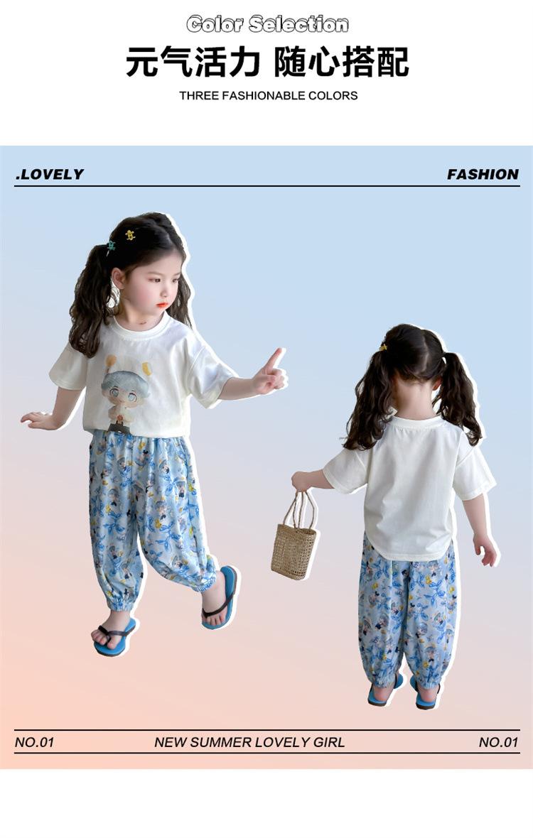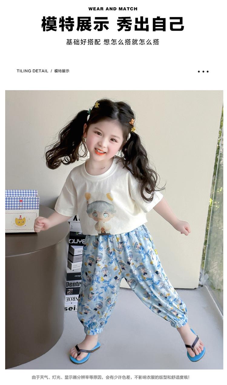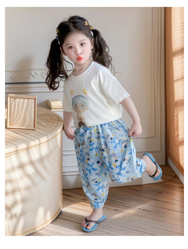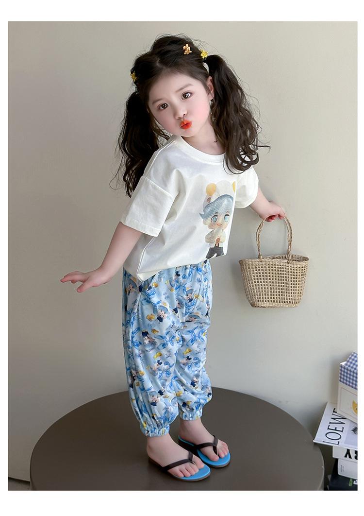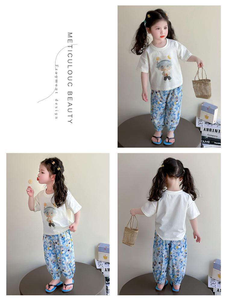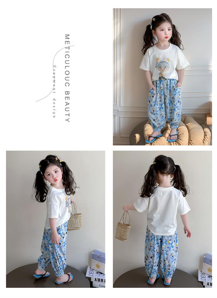 Conjunto Infantil de Verão de Manga Curta para Meninas 2025 Novo Camiseta Infantil Calça Anti-Mosquito Desenho Animado Conjunto de Duas Peças Roupas de Verão para Bebê 3