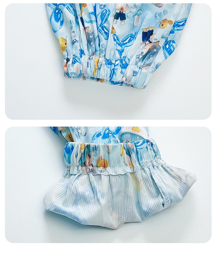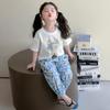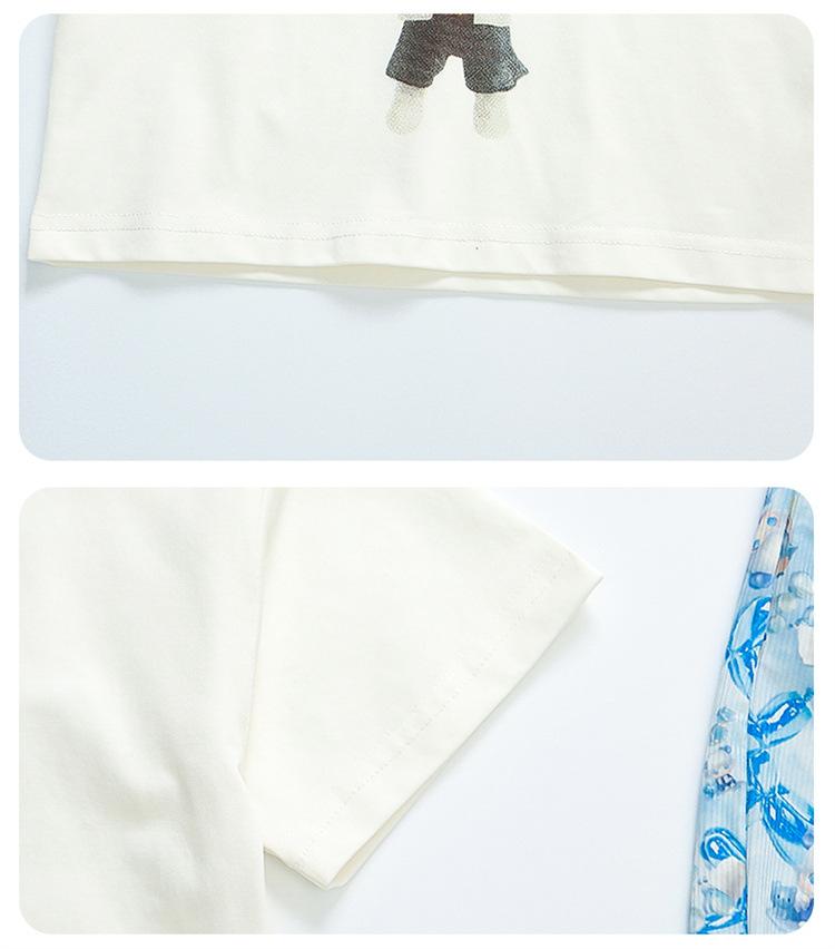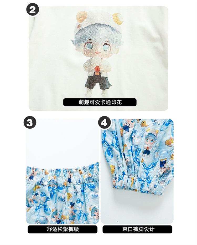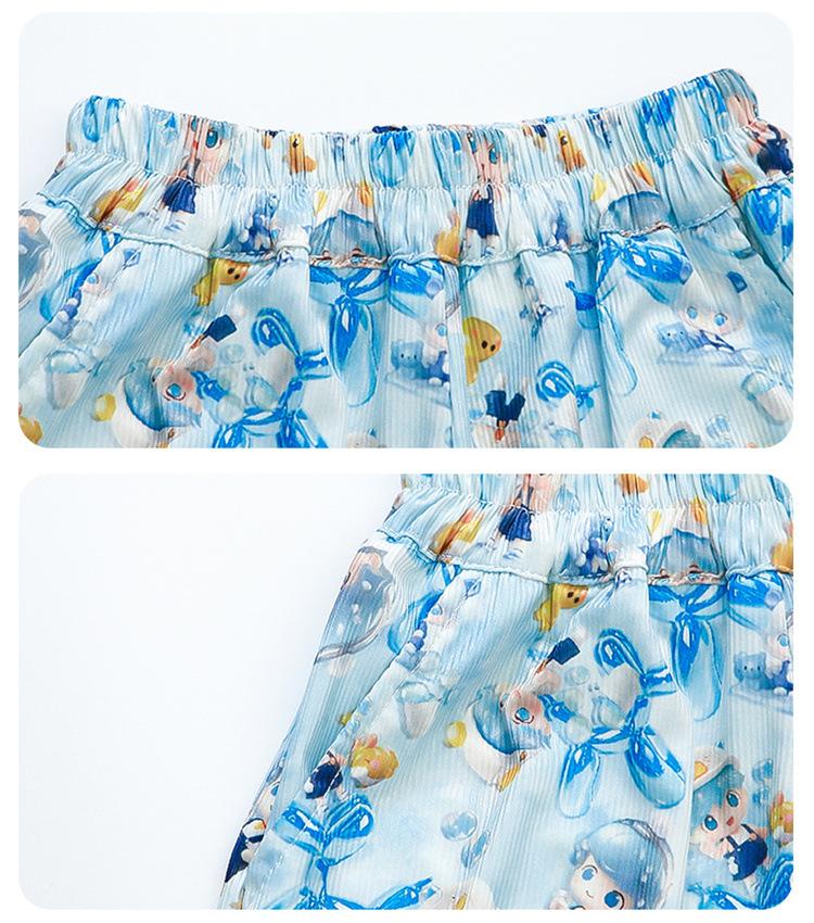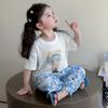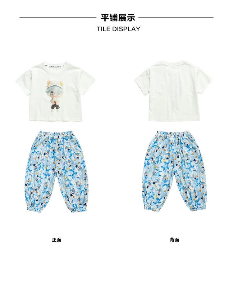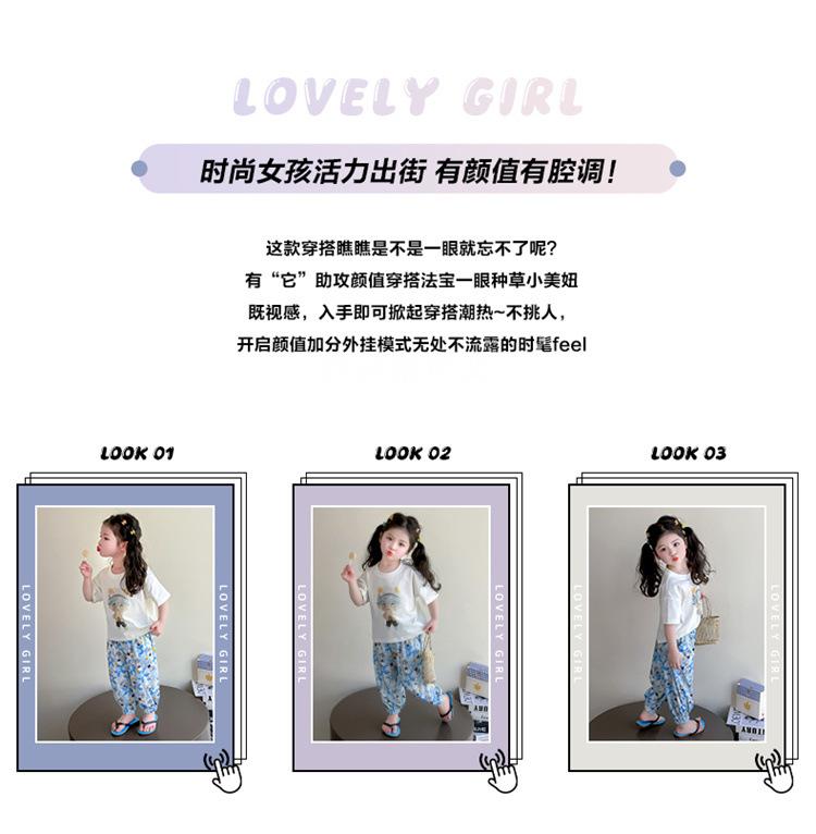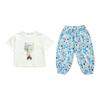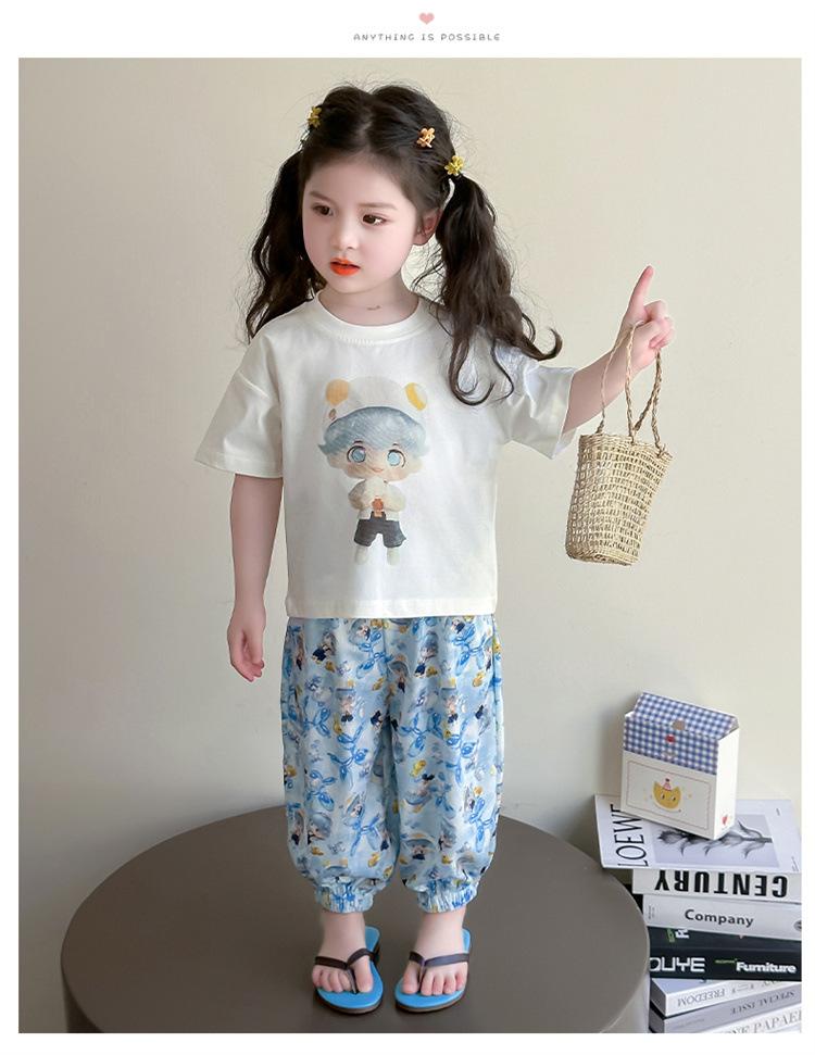 Conjunto Infantil de Verão de Manga Curta para Meninas 2025 Novo Camiseta Infantil Calça Anti-Mosquito Desenho Animado Conjunto de Duas Peças Roupas de Verão para Bebê 3