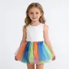 Saia Infantil Europeia e Americana Saia Tutu Saia de Tule Arco-Íris Meninas Apresentação de Dança Balé Saia Curta Atacado