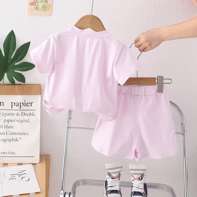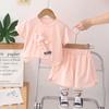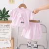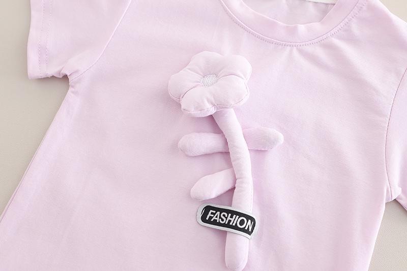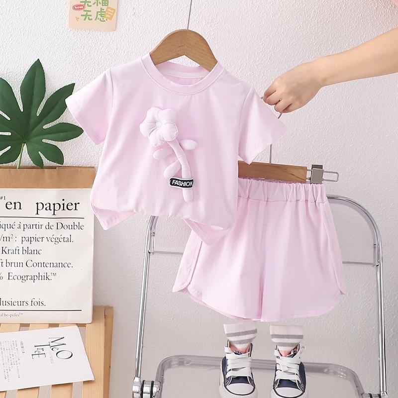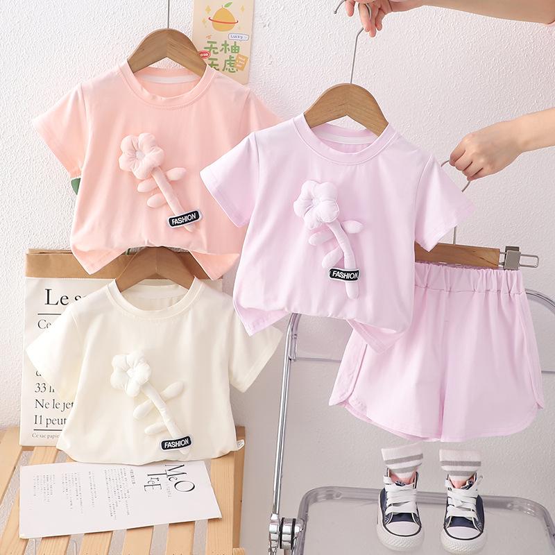 Conjunto Infantil Elegante de Manga Curta com Flor Tridimensional 2025 Verão Novo Conjunto de Duas Peças para Bebê Atacado
