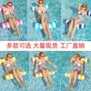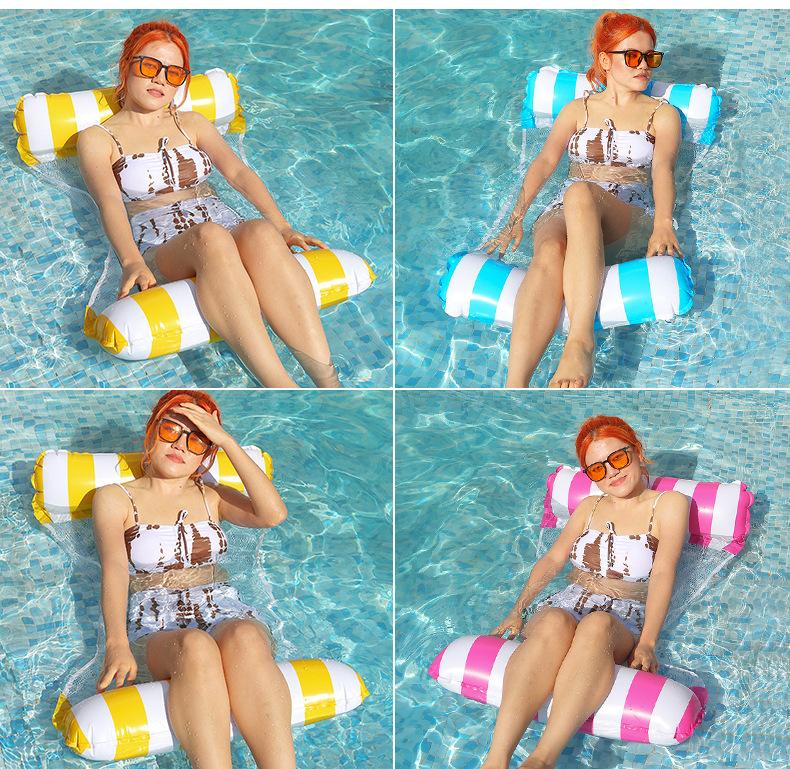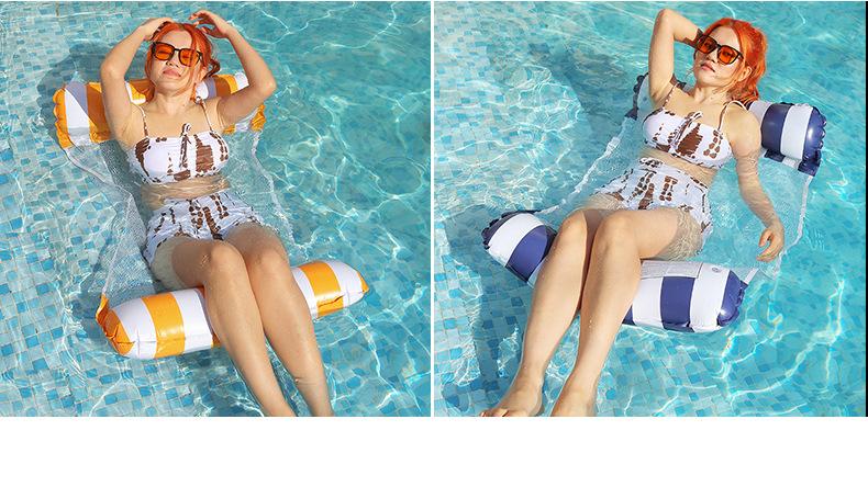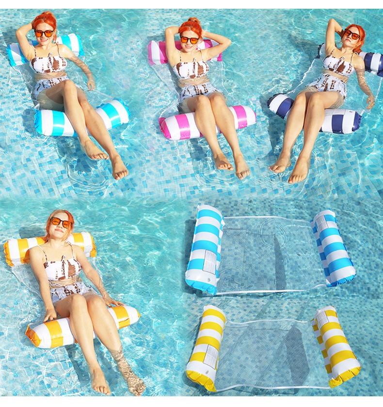 Bóia inflável de spot transfronteiriço espreguiçadeira inflável dobrável listrada com rede bóia brincadeira na água piscina rede