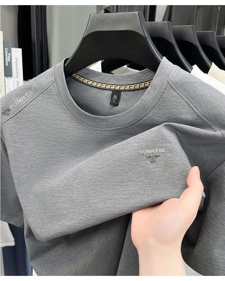 Compre 2025 Nova Camiseta Masculina de Verão de Manga Curta Gola Redonda Cor Pura Solta Casual Esportiva Fina de Secagem Rápida Respirável Top no atacado no Joom.pro
