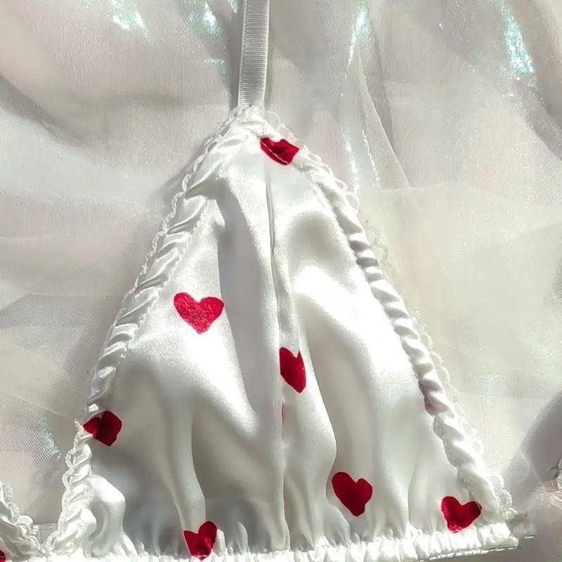 Lingerie Sexy Explosiva Conjunto de Pijama Fofo Sexy de Três Pontos Amor Charme Paixão Menina Quente Sexy Estilo Charme da Meia-Noite