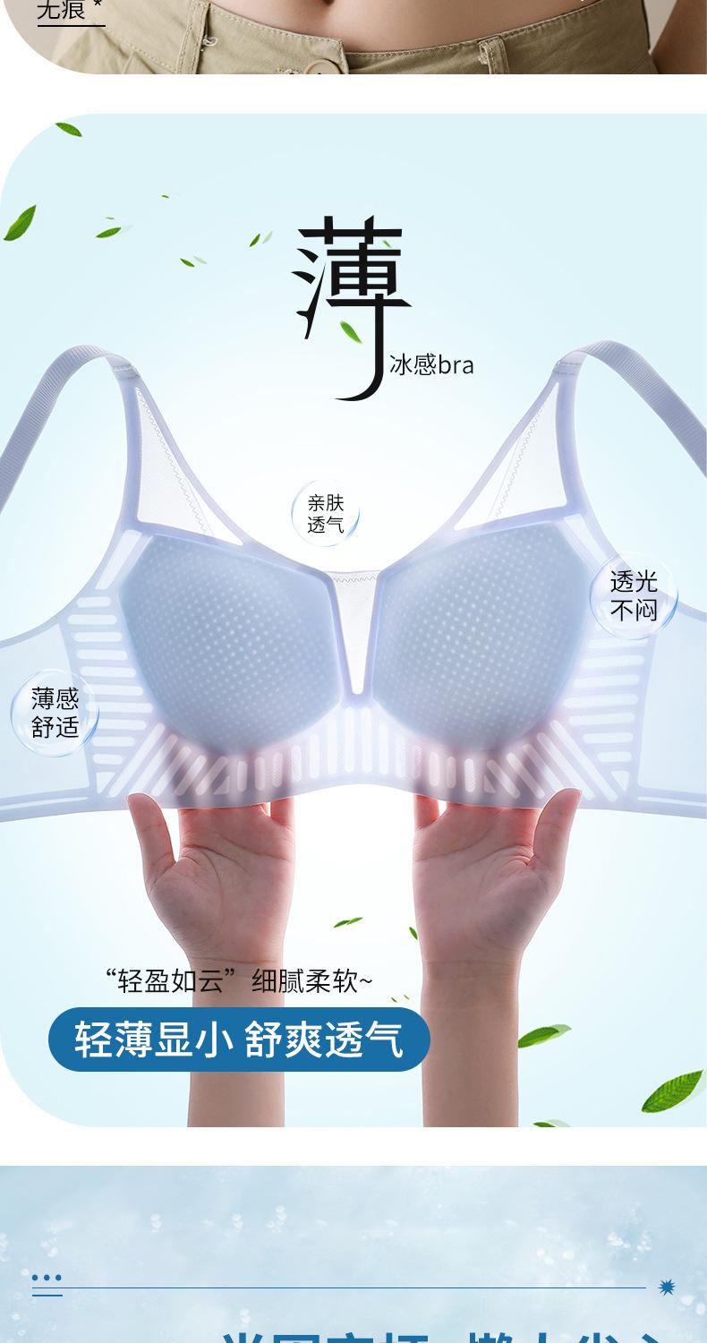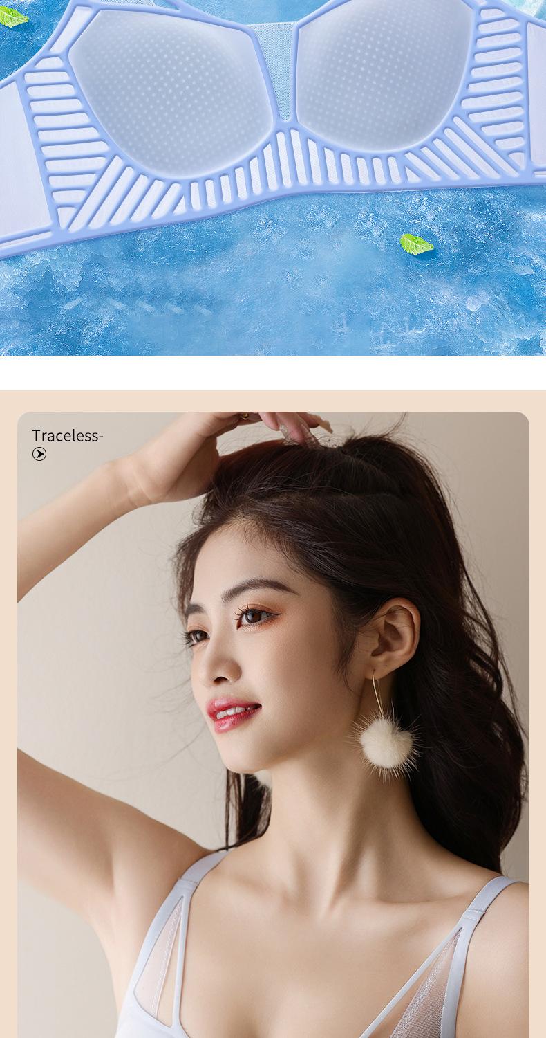 Sutiã de Suporte Macio Jelly Sem Costura para Mulheres com Seios Pequenos, Fino Respirável de Verão com Bojo Fixo, Sem Aros, Sutiã com Costas Bonitas