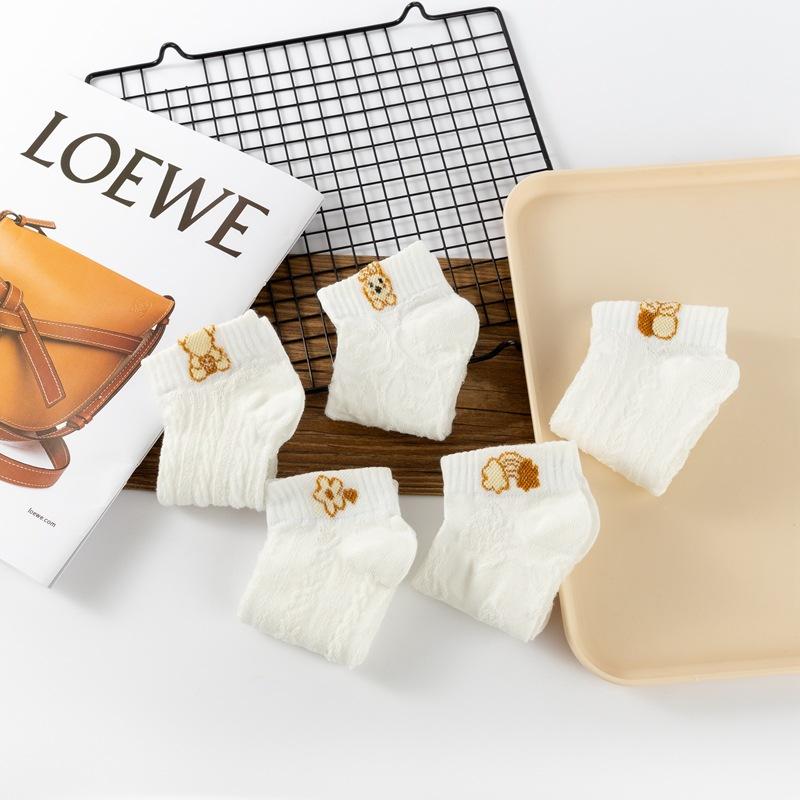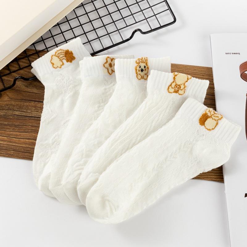 Meias Curtas Femininas Meias Baixas Respiráveis Meias Femininas da Moda Verão Urso Branco Estilo Coreano Primavera e Verão Tubo Curto Meias de Barco para Mulheres