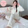 Nova Primavera e Outono Algodão Puro Roupa de Casa Doce Ins Cardigan Calças de Manga Comprida Bojo Peito Casaco Pijama Fino