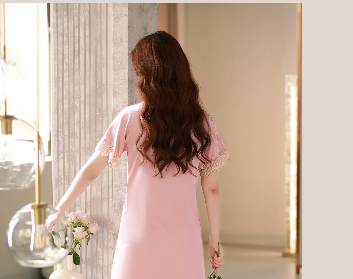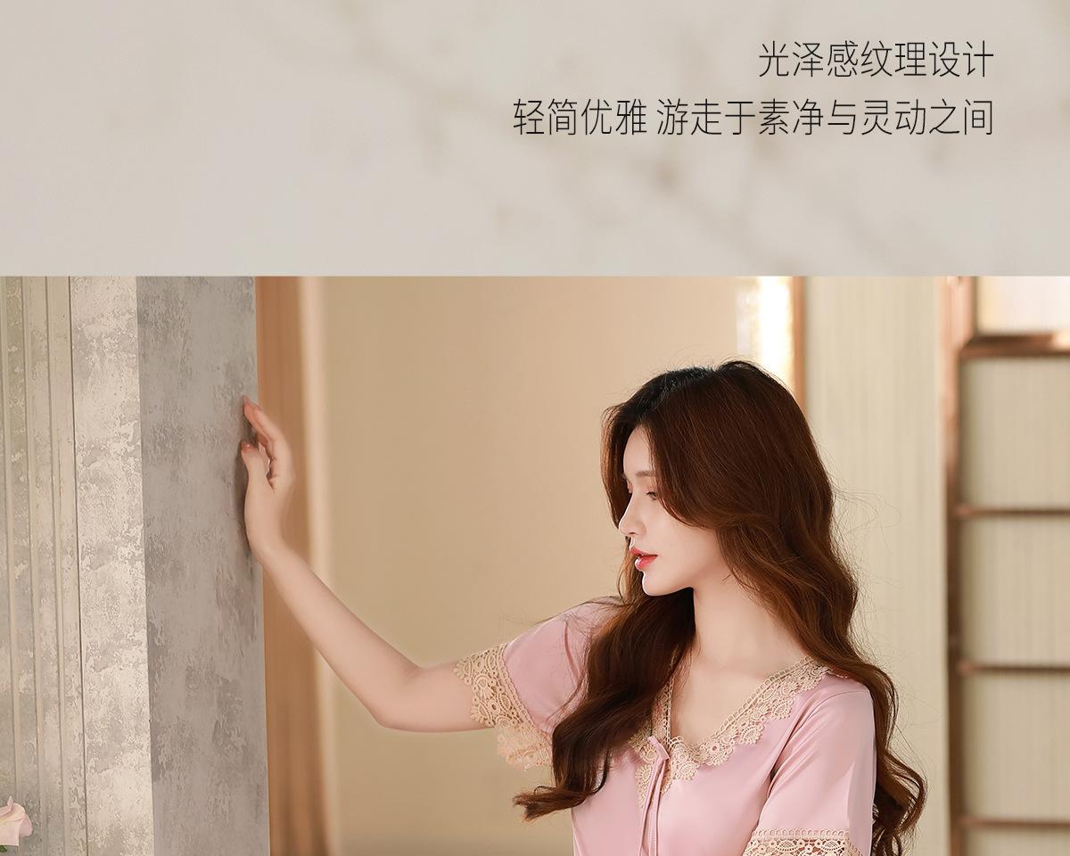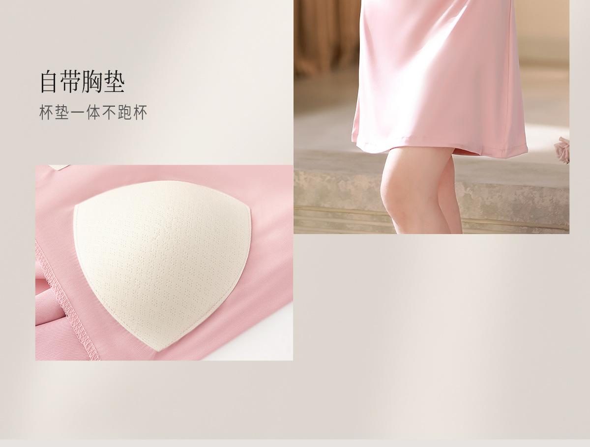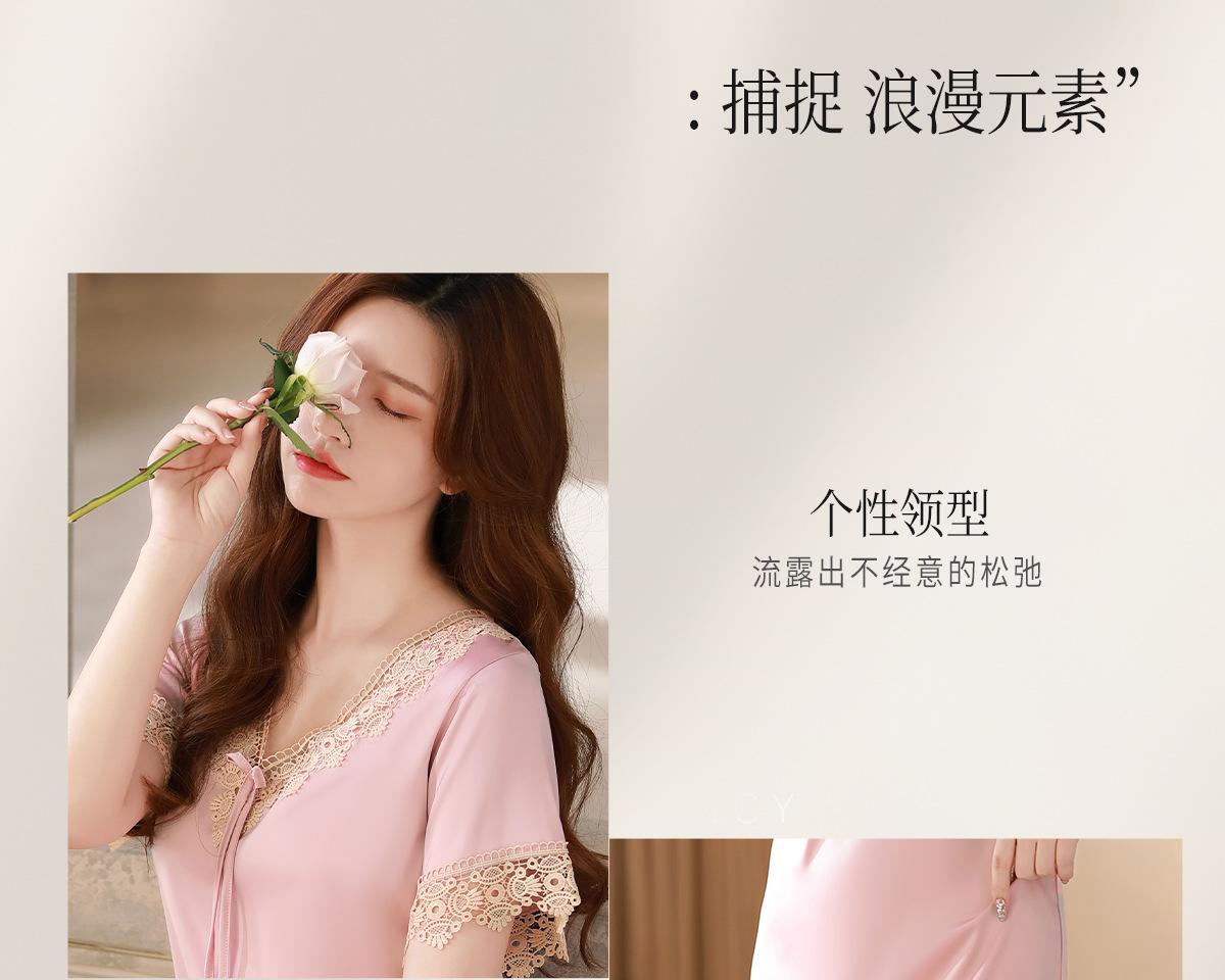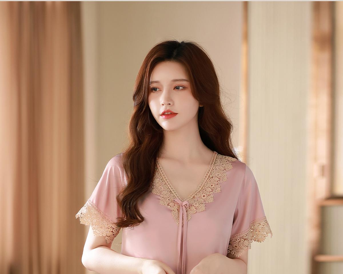 [Seda de Gelo] Vestido Pijama Seda de Gelo Feminino Verão Fresco Manga Curta Camisola Sexy Renda Tamanho Grande com Bojo