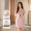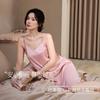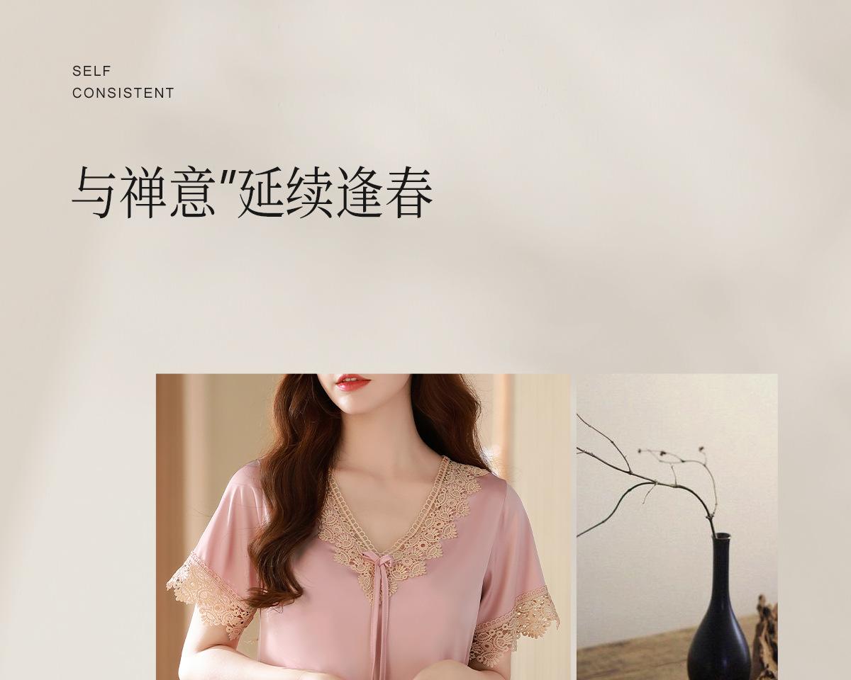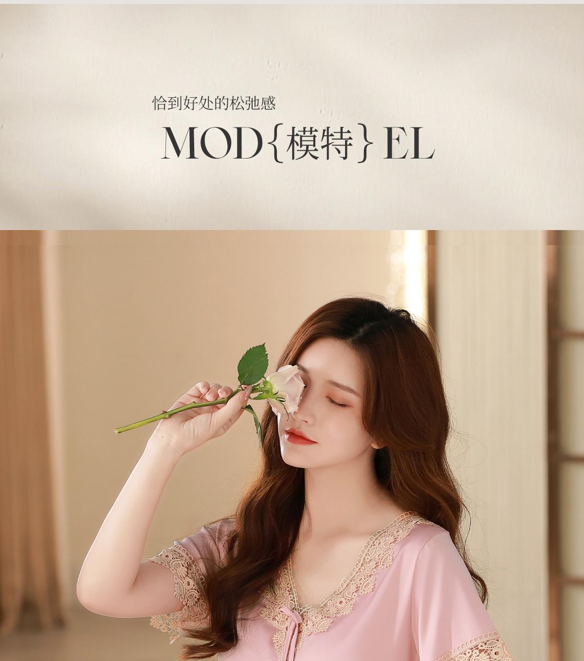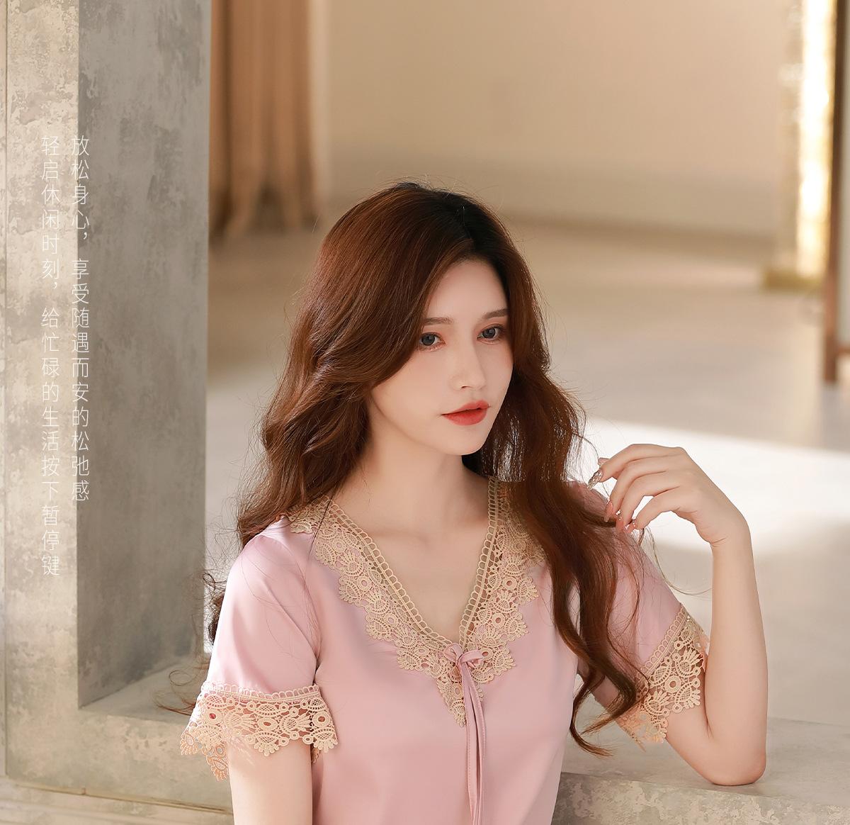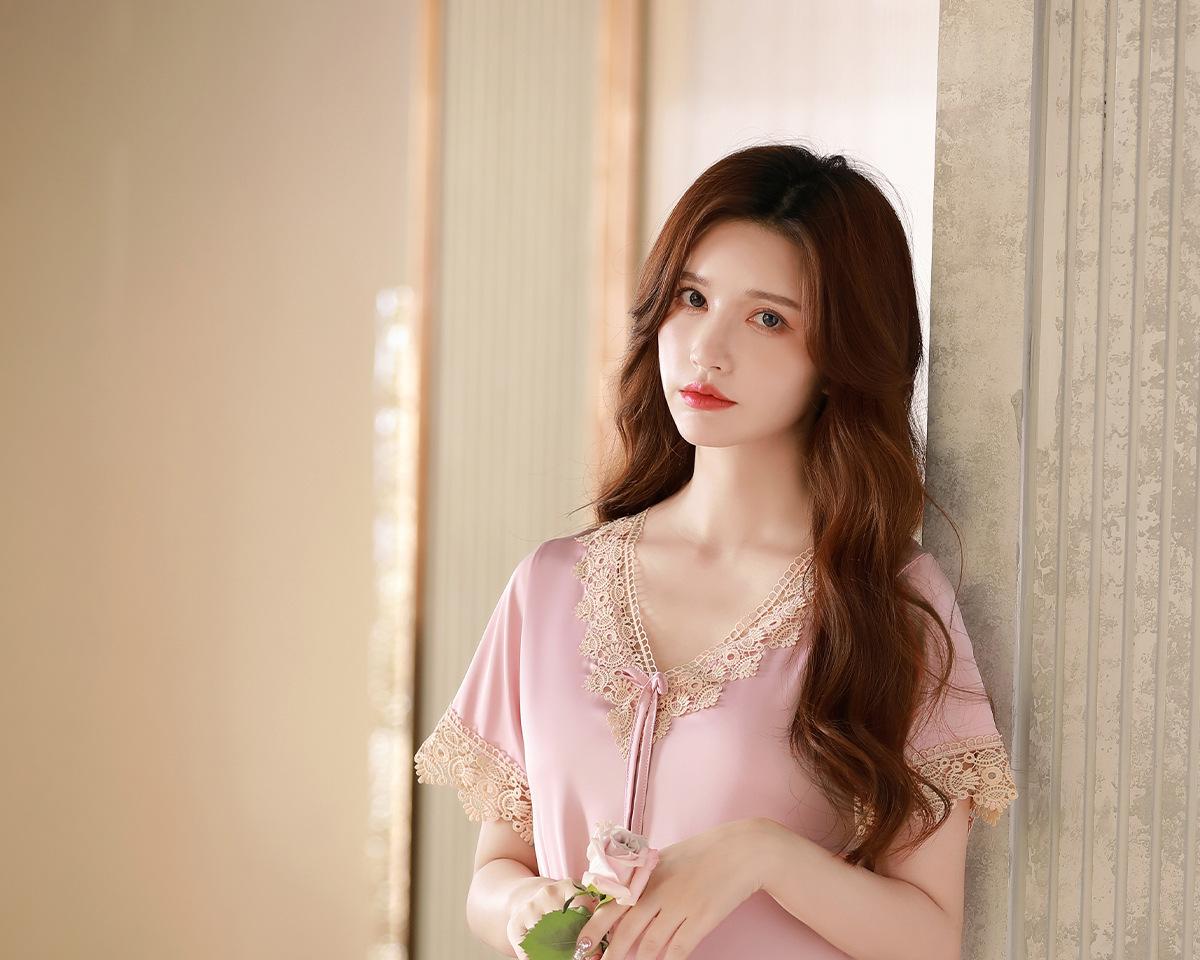 [Seda de Gelo] Vestido Pijama Seda de Gelo Feminino Verão Fresco Manga Curta Camisola Sexy Renda Tamanho Grande com Bojo