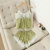 Pijama Feminino, Verão Seda Gelo Manga Curta Shorts, Conjunto Roupa de Casa Verão, Renda Sexy, Sofisticado, Casual e Confortável