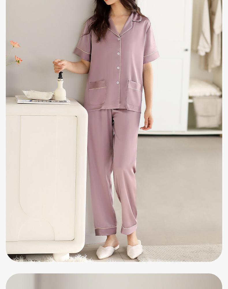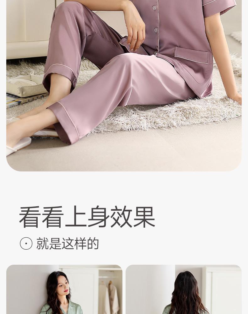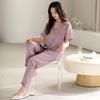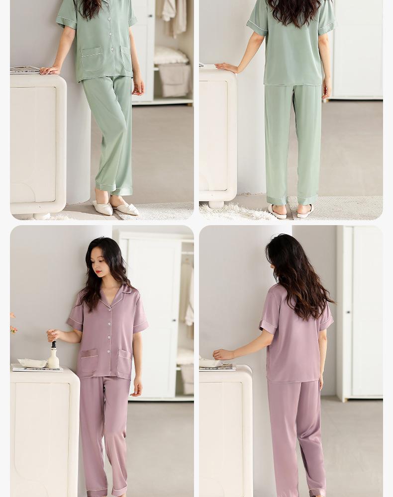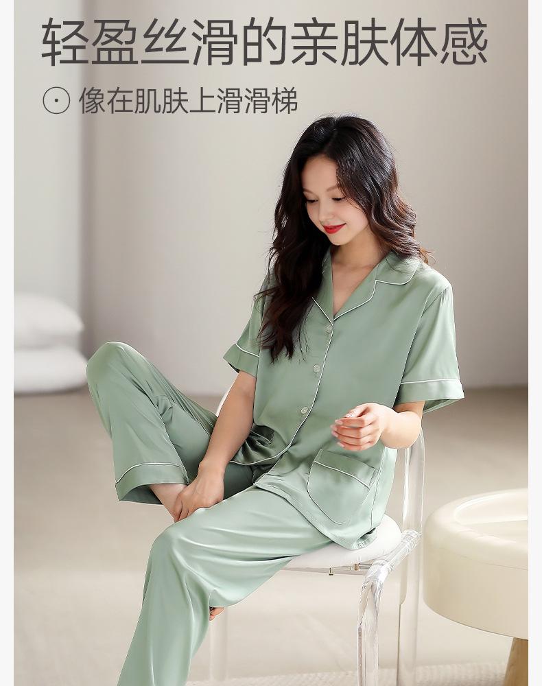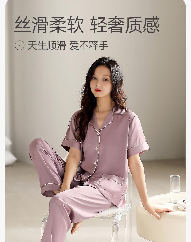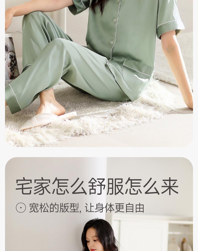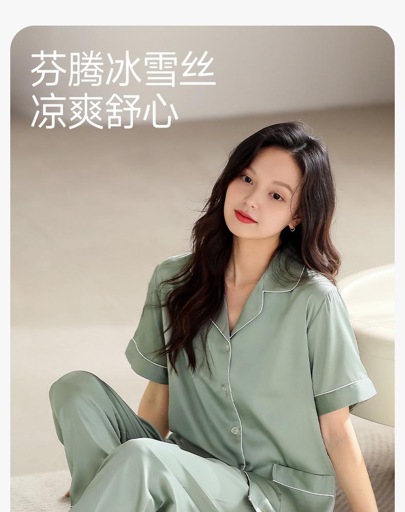 [Seda de Gelo e Neve] Pijama Feminino de Verão Novo Estilo Manga Curta Fino Respirável terno M Simples Casual plus size Casa