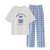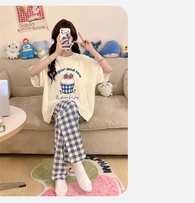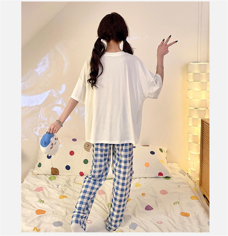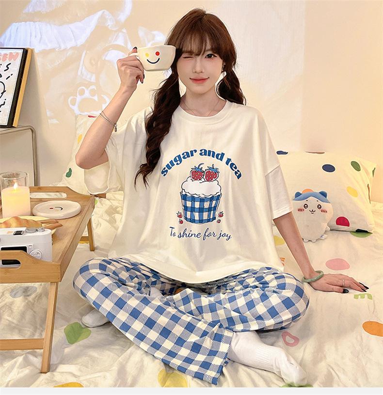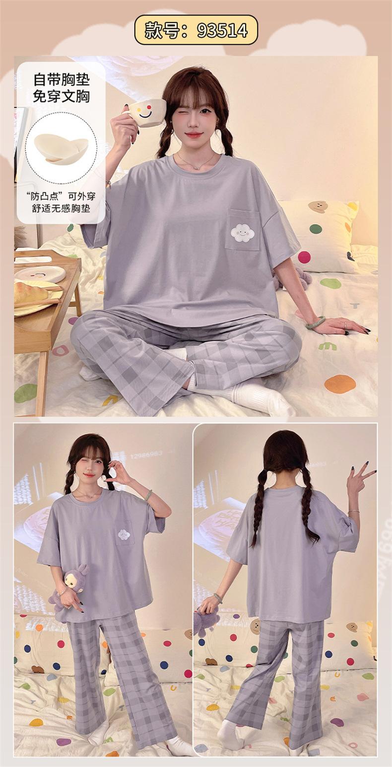 Pijama com Bojo Verão Fino Feminino Manga Curta Fresco Modal Calças Roupa de Casa Conjunto Fofo Casual Roupa Externa