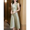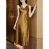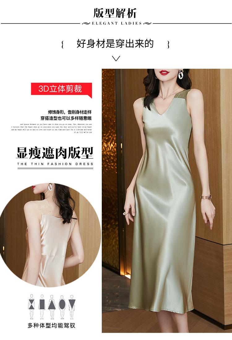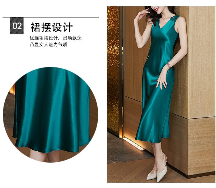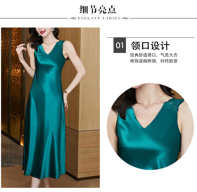 Camisola de Verão de Seda Pesada para Mulheres, Pijama de Comprimento Médio, Saia Slip, Cetim de Seda, Roupa de Exterior para Casa