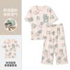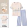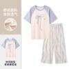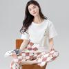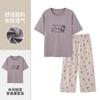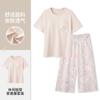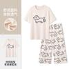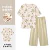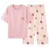 Pulôver de Gola Redonda Verão Feminino Manga Curta Calças Cropped Pijama Macio Roupa de Casa Conjunto Casual e Confortável Elástico