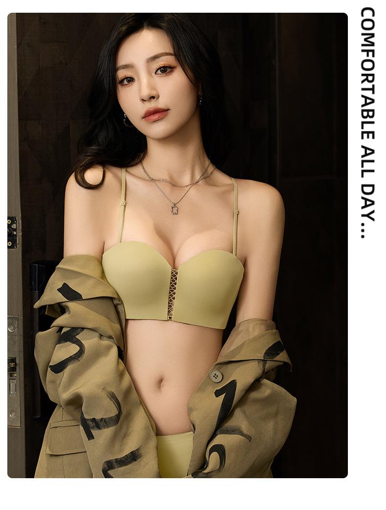 Roupa Íntima Redonda para Juntar o Busto Feminina Busto Pequeno Grande Copa Não Vazia Não Enrola Sem Aro de Aço Alça Fina Pequena Costas Bonitas Sutiã Luminoso