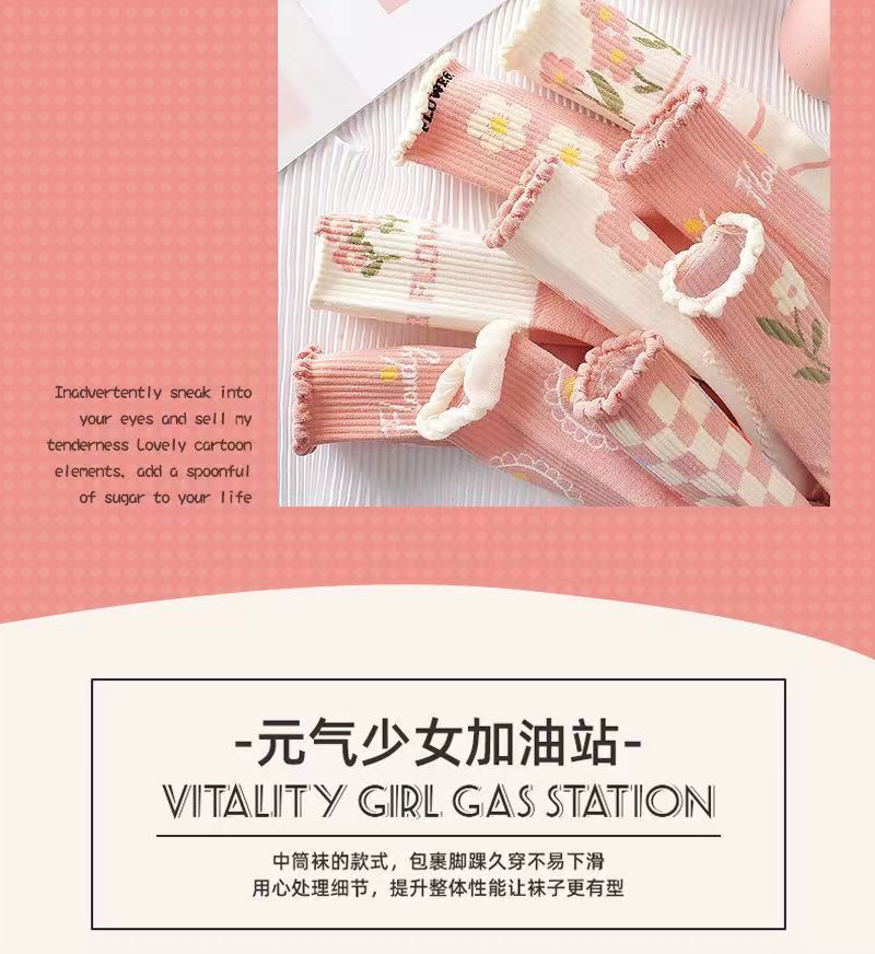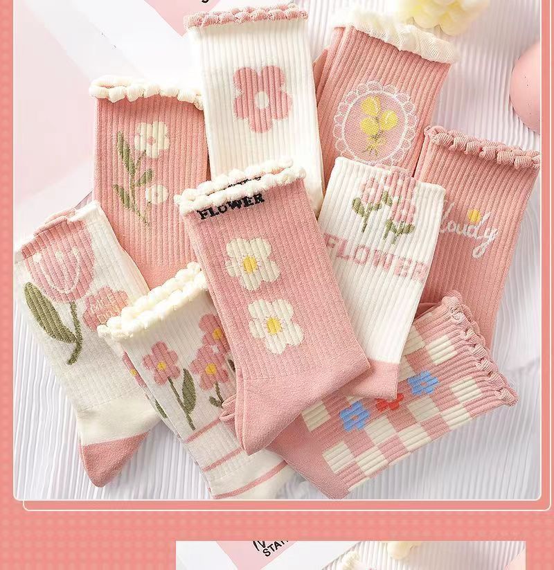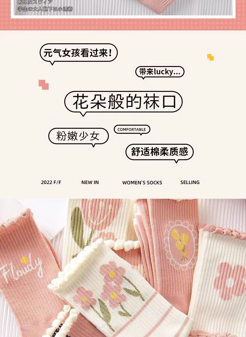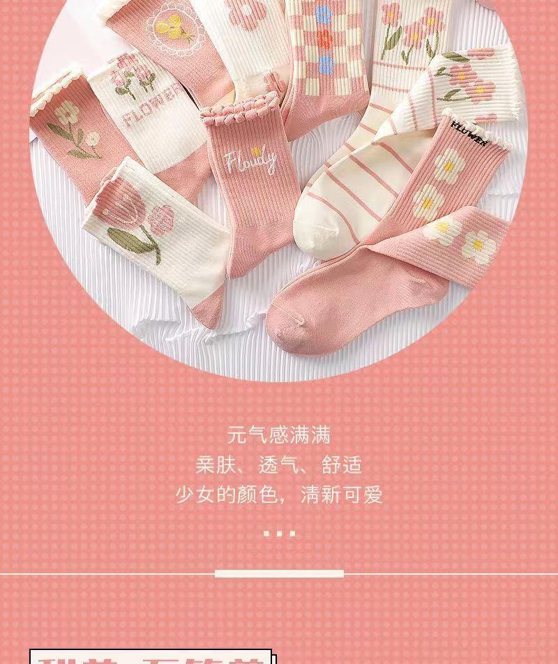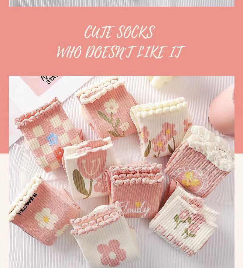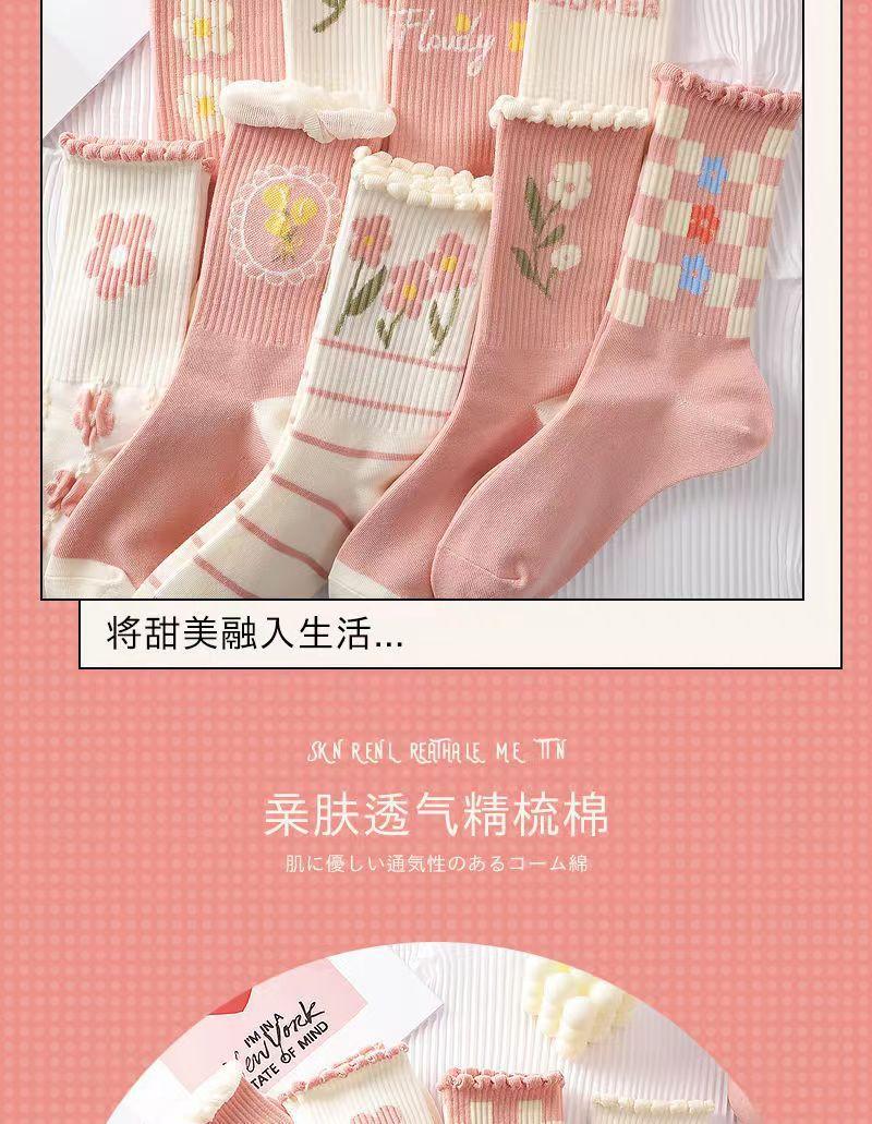 Compre Meias femininas primavera e verão novas meias de cano médio meias de renda rosa meias de menina ins moderno meias altas Algodão Estilo colegial doce no atacado no Joom.pro