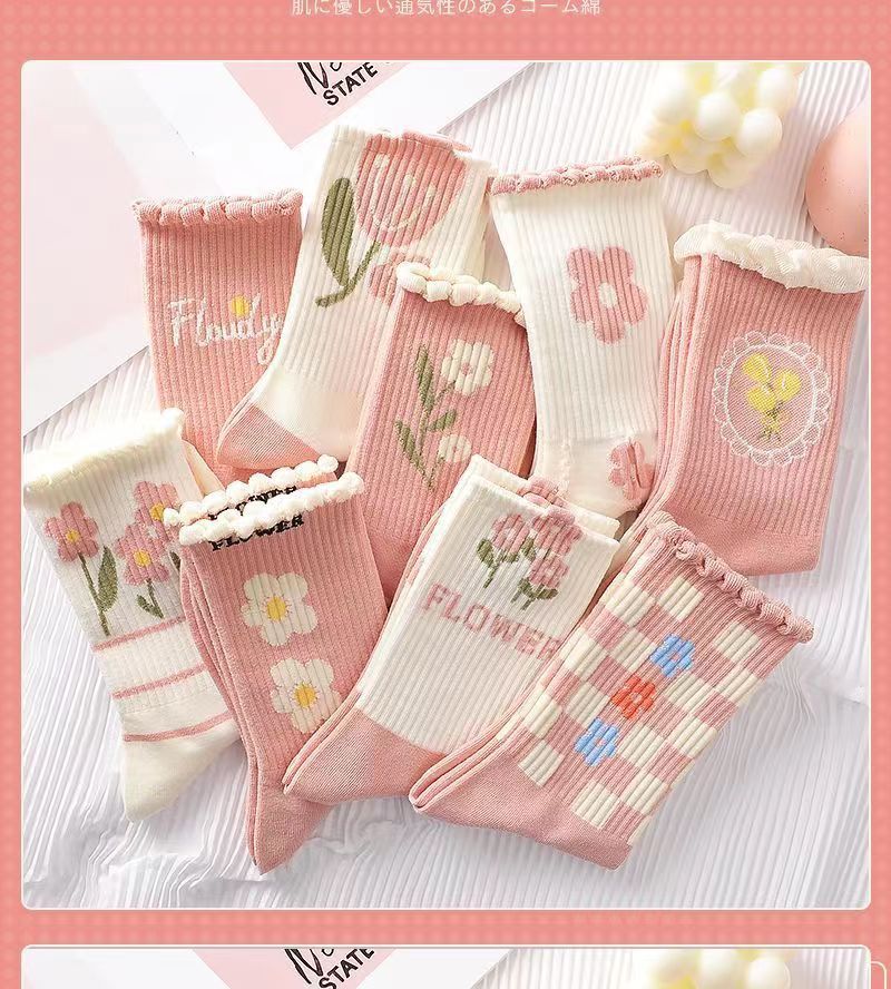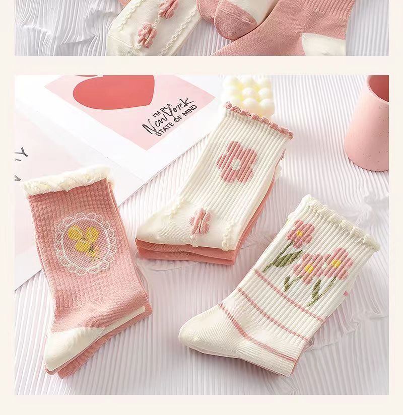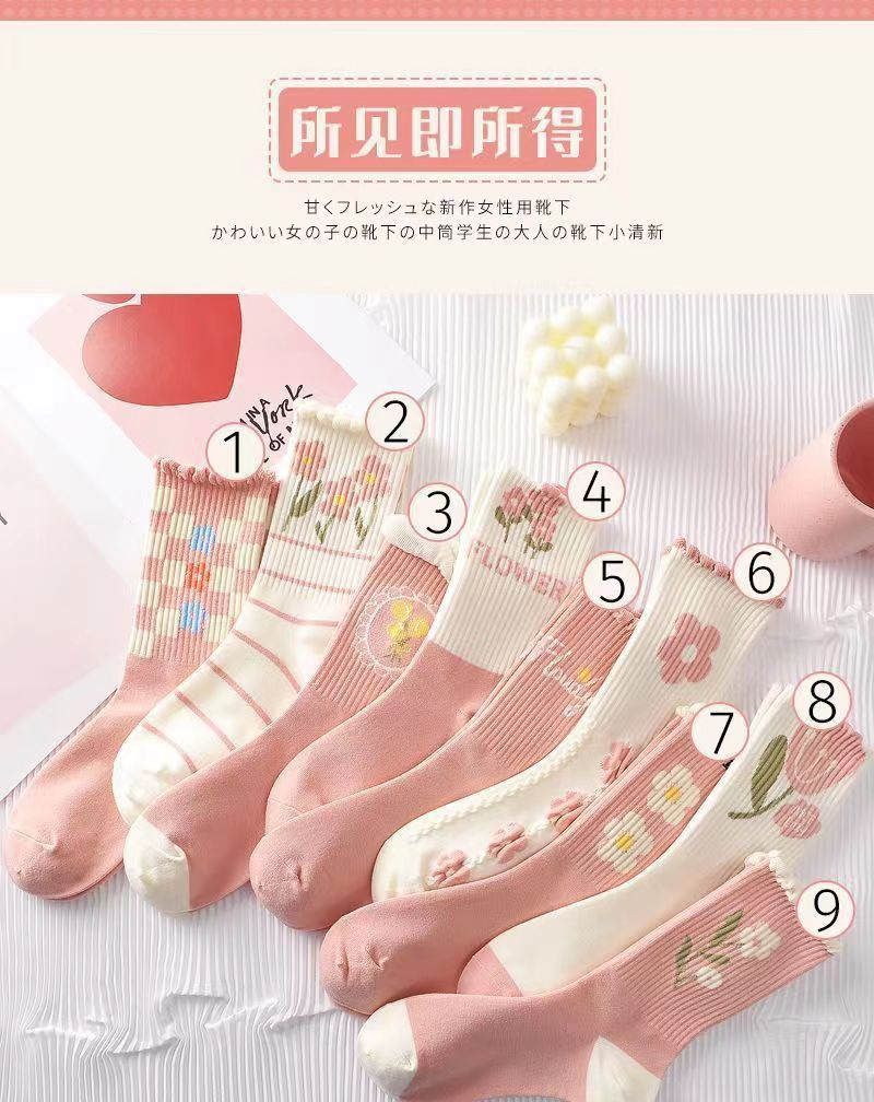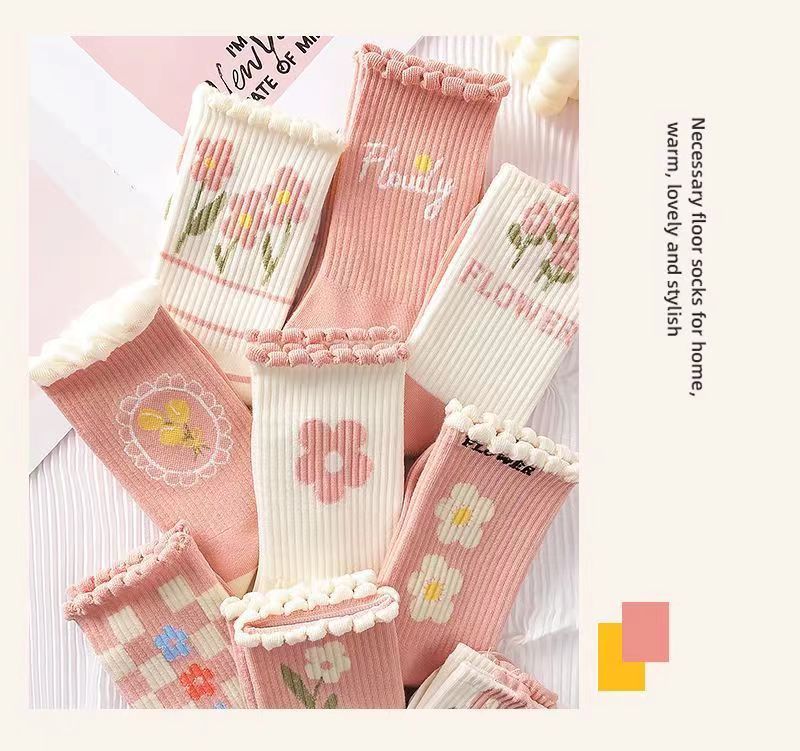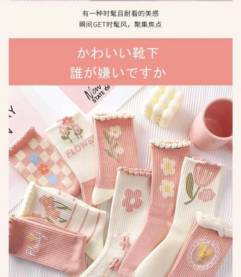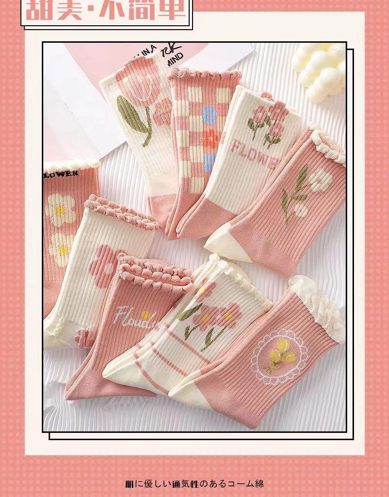 Compre Meias femininas primavera e verão novas meias de cano médio meias de renda rosa meias de menina ins moderno meias altas Algodão Estilo colegial doce no atacado no Joom.pro
