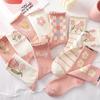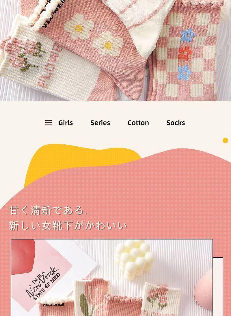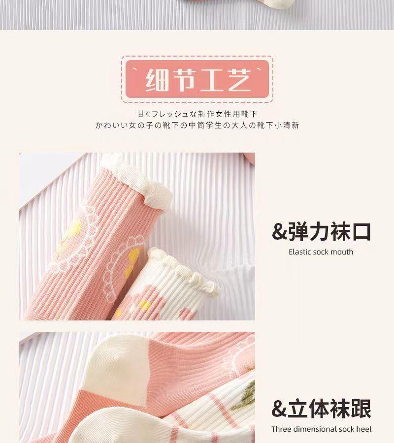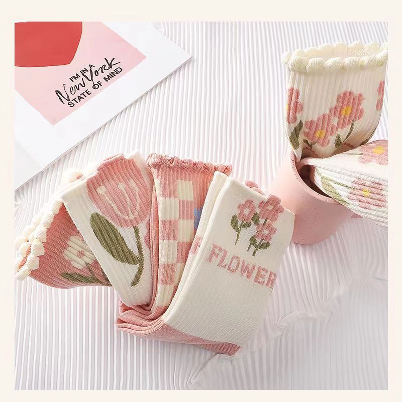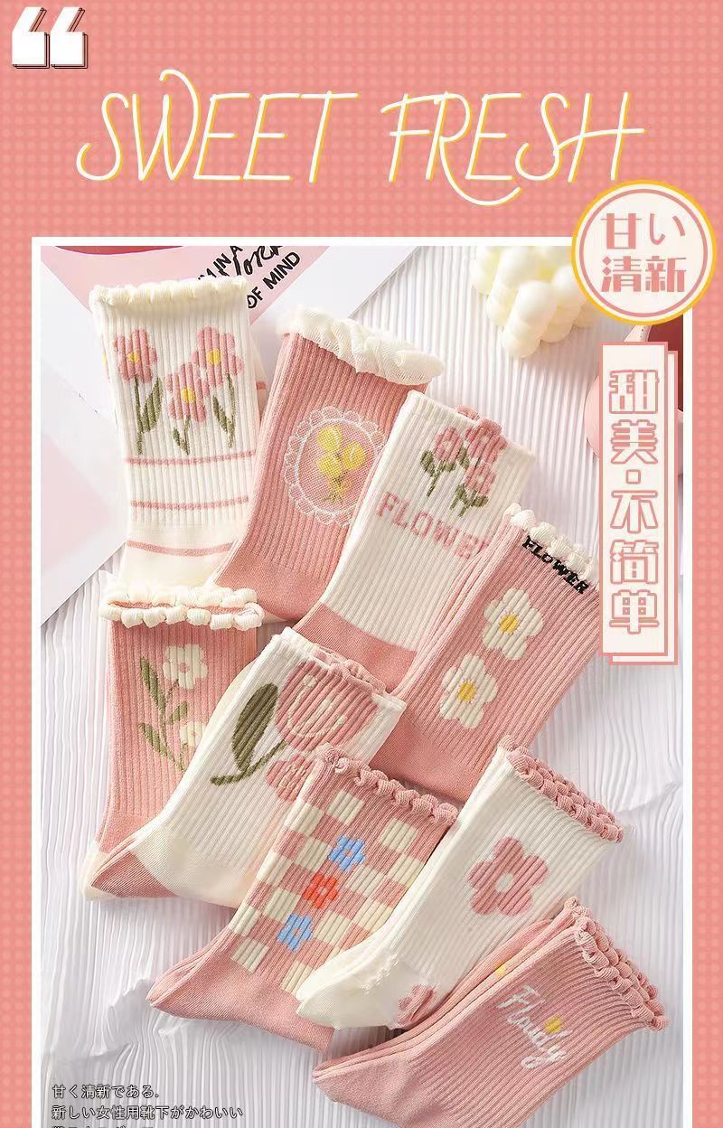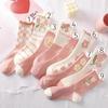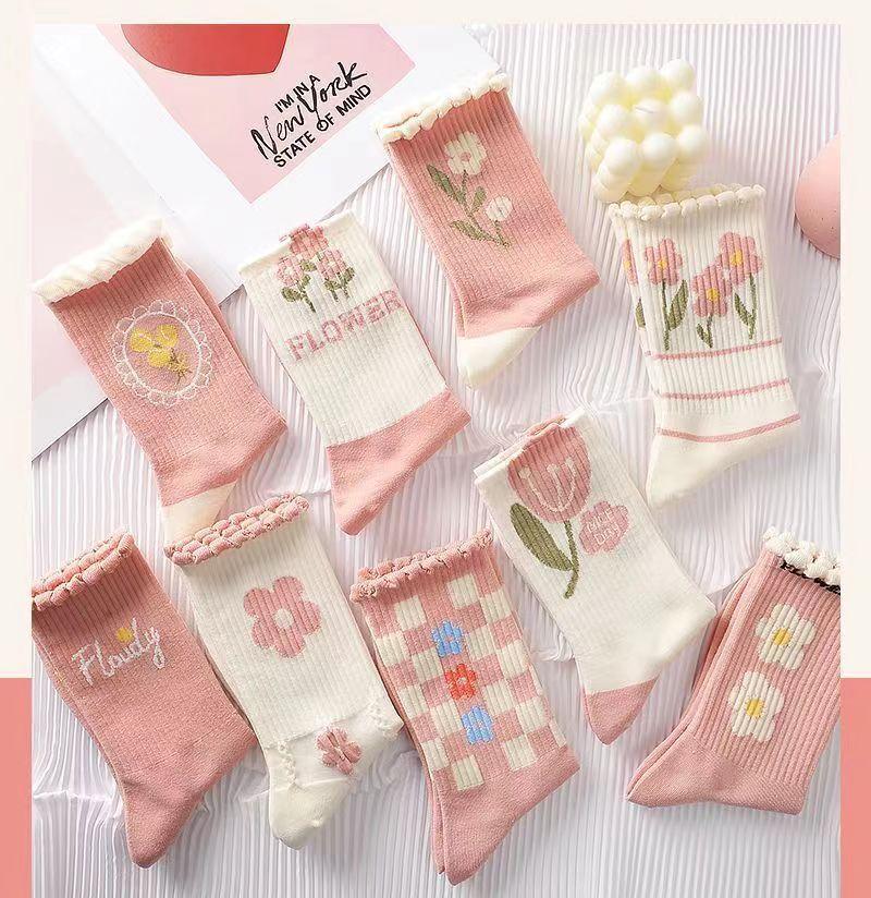 Compre Meias femininas primavera e verão novas meias de cano médio meias de renda rosa meias de menina ins moderno meias altas Algodão Estilo colegial doce no atacado no Joom.pro