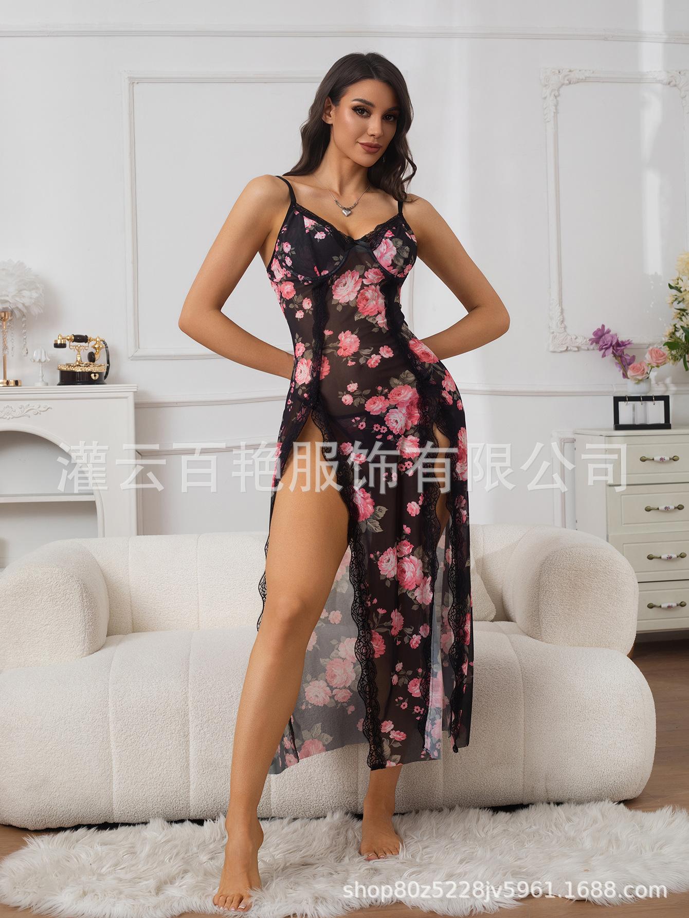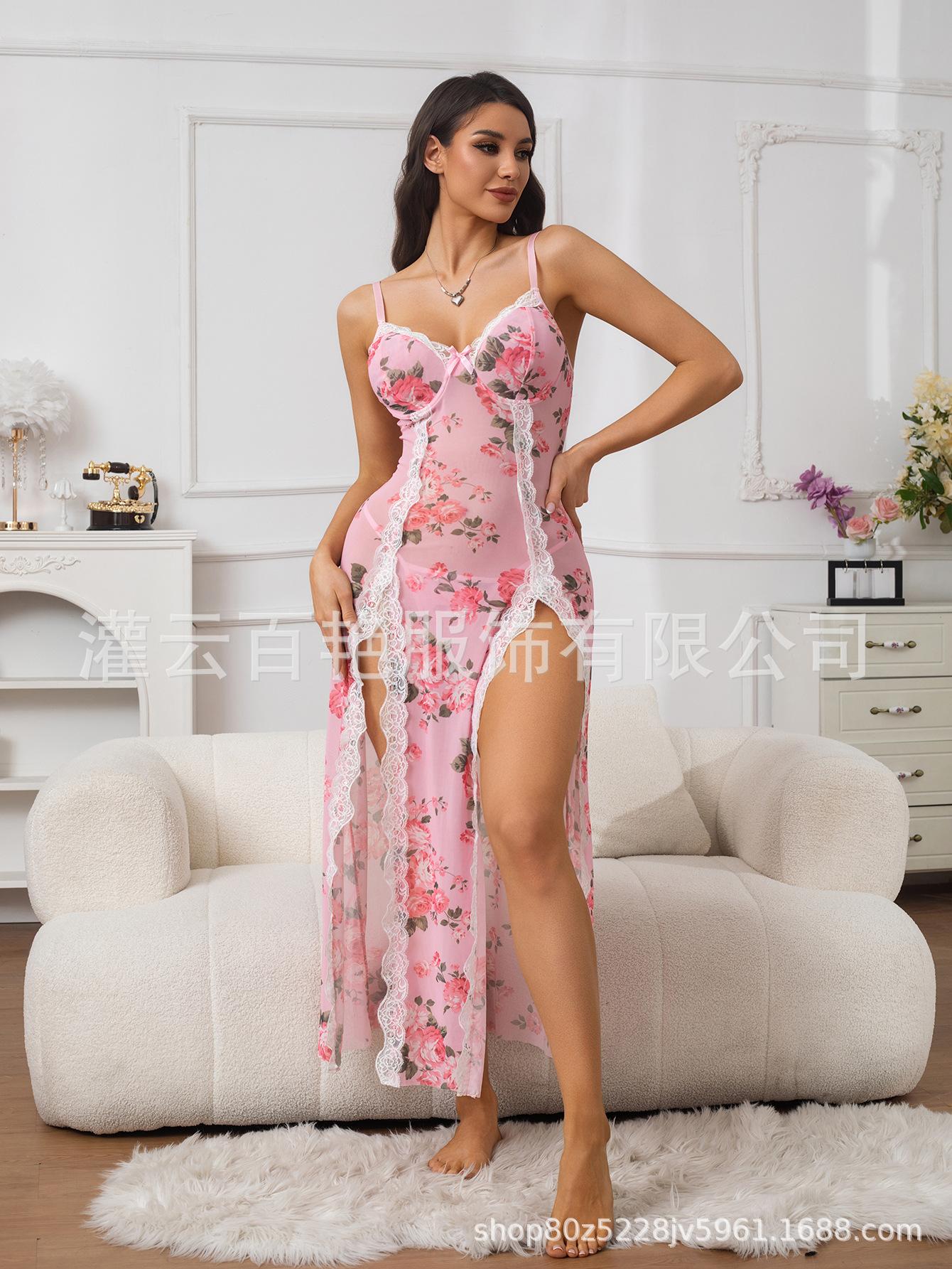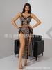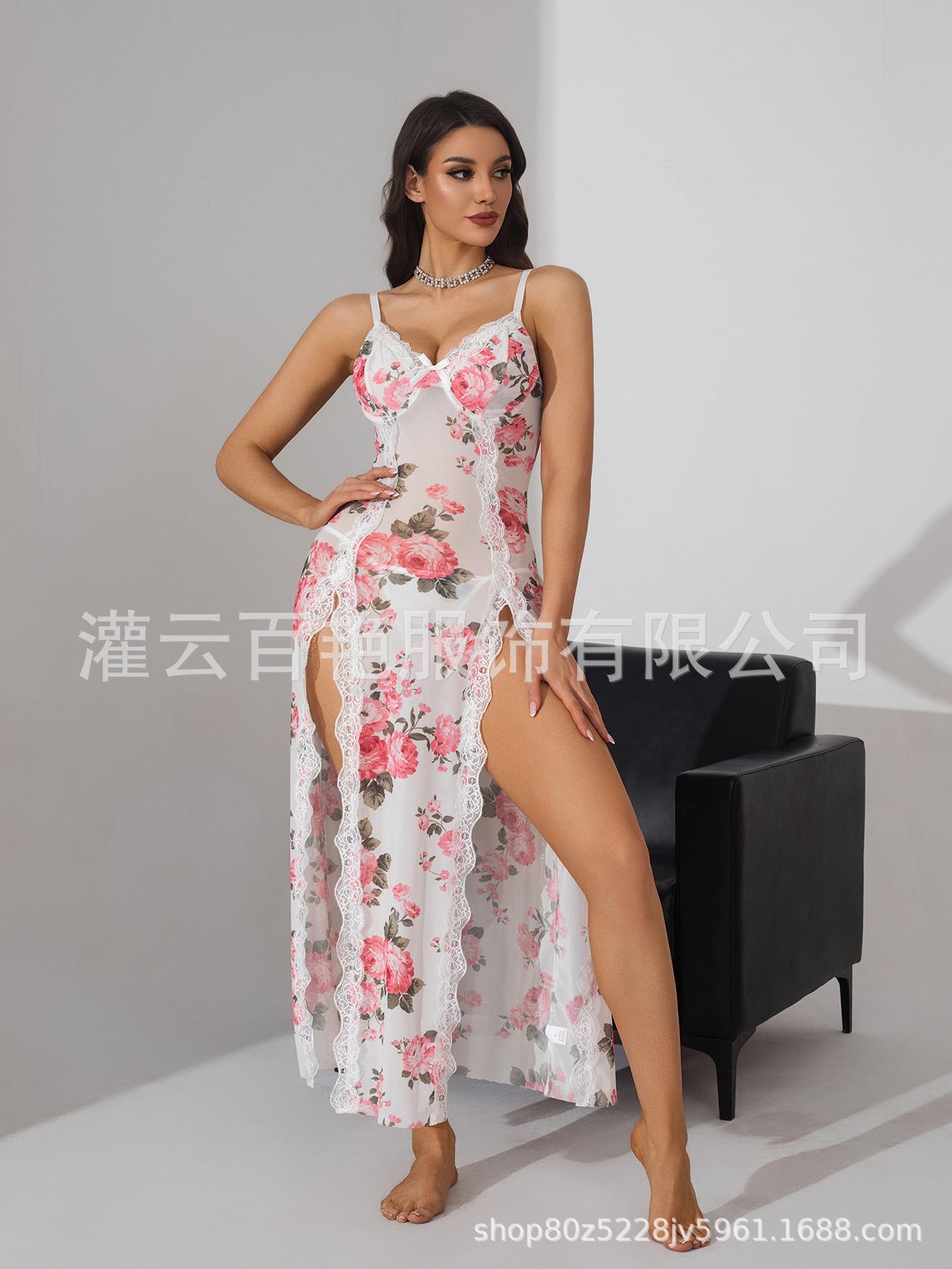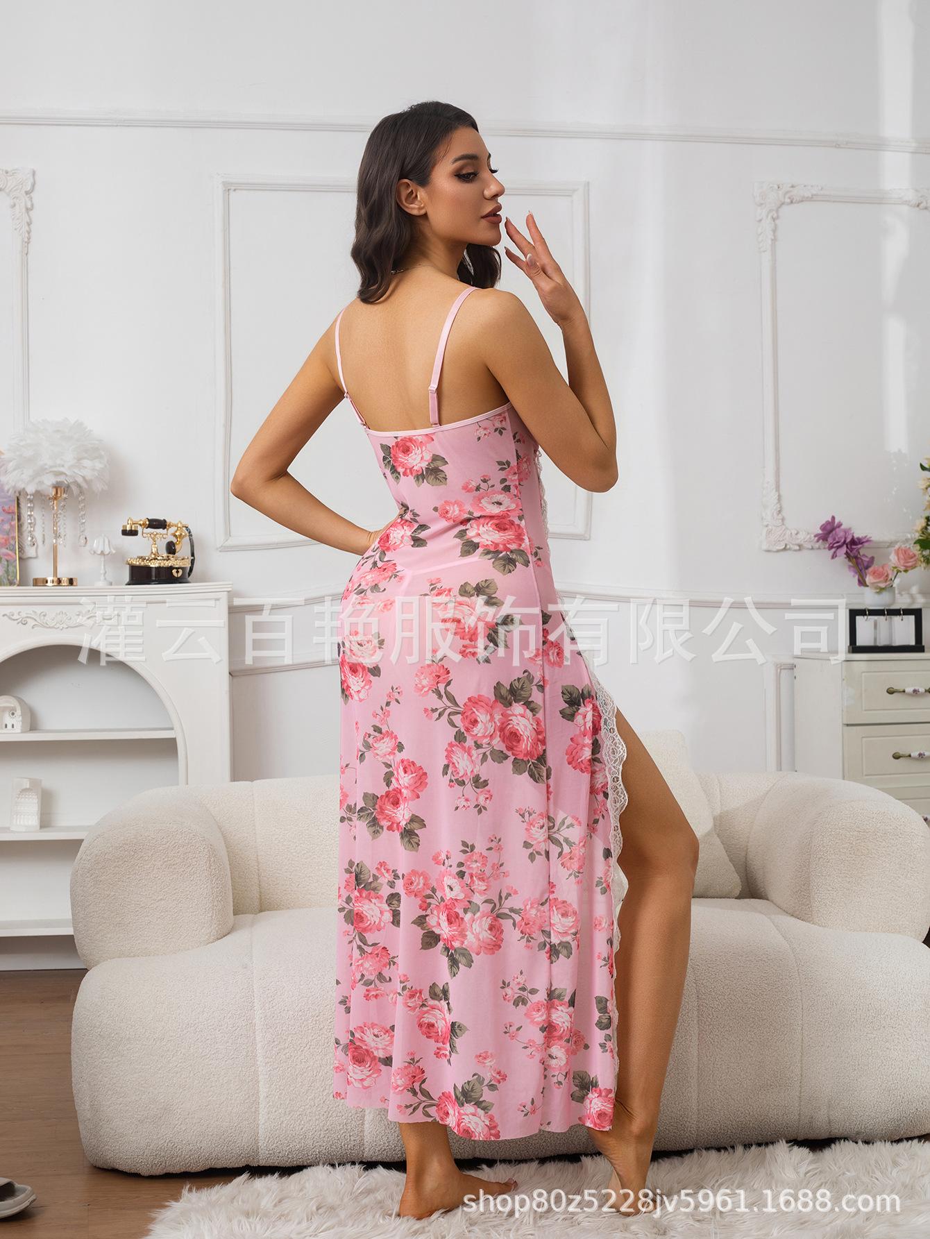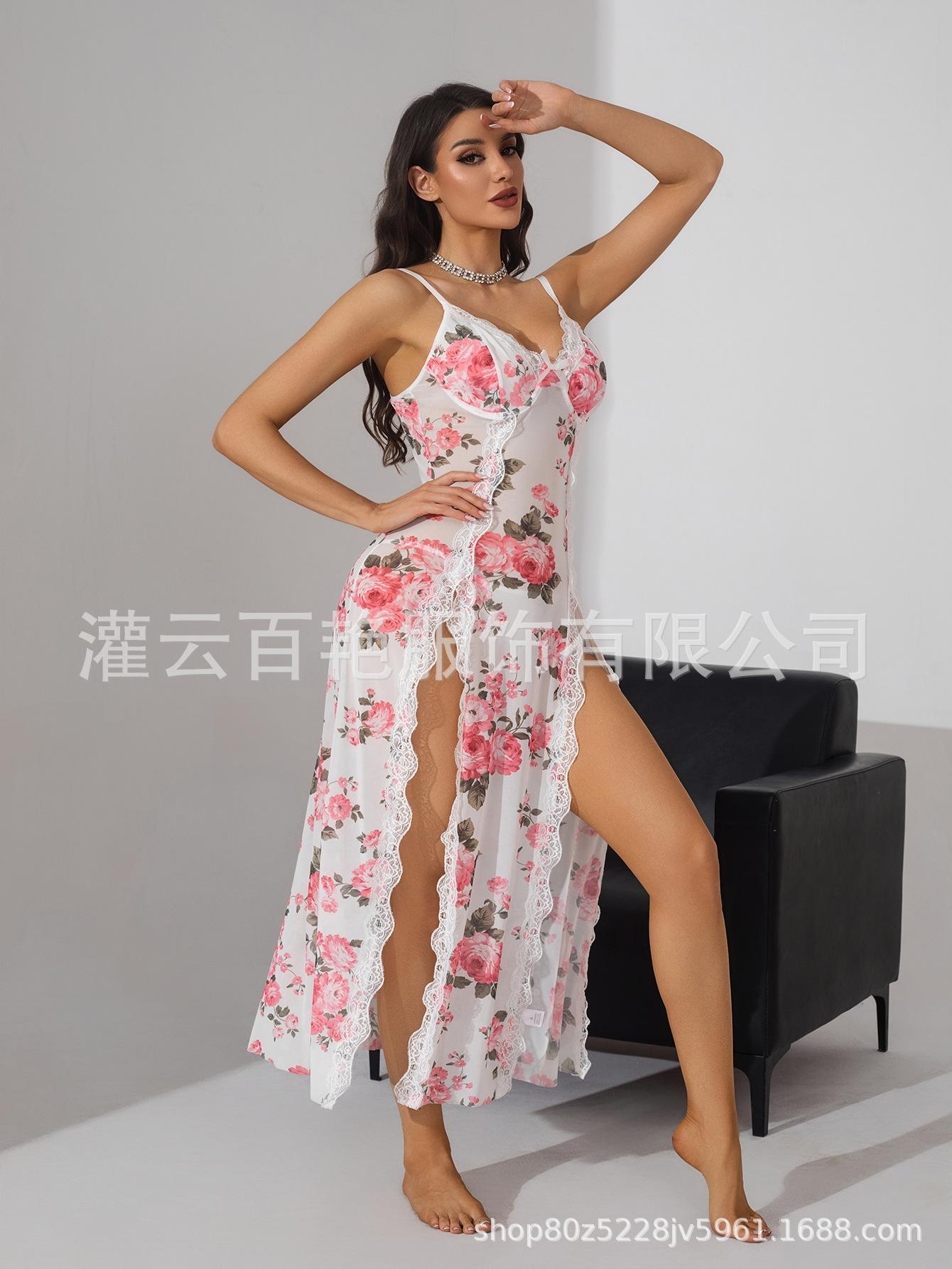 Fornecimento Transfronteiriço Saia Suspender Estampa de Leopardo Popular Europeia e Americana Renda Conjunto Sexy Casa Pijama Suspender Longo
