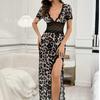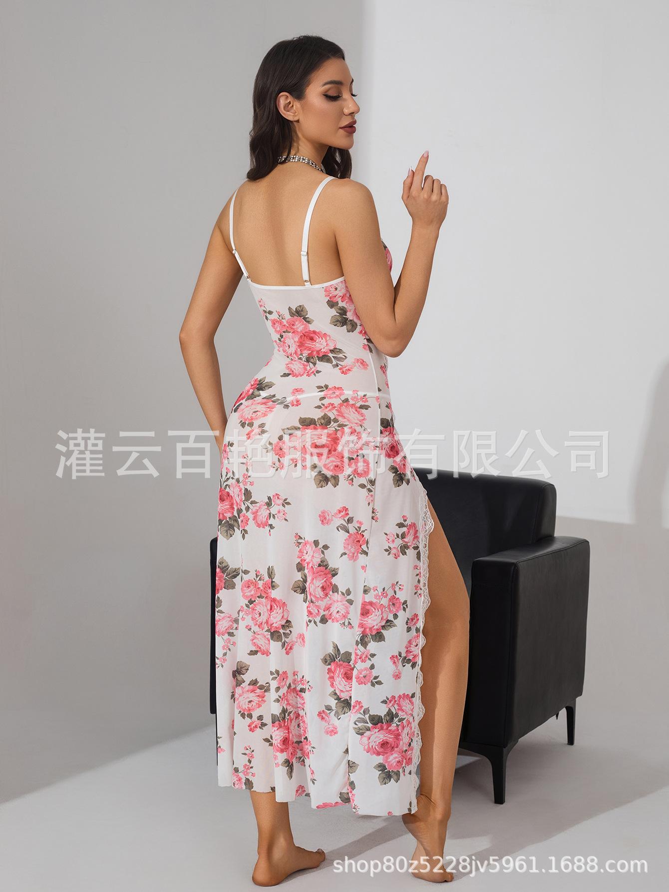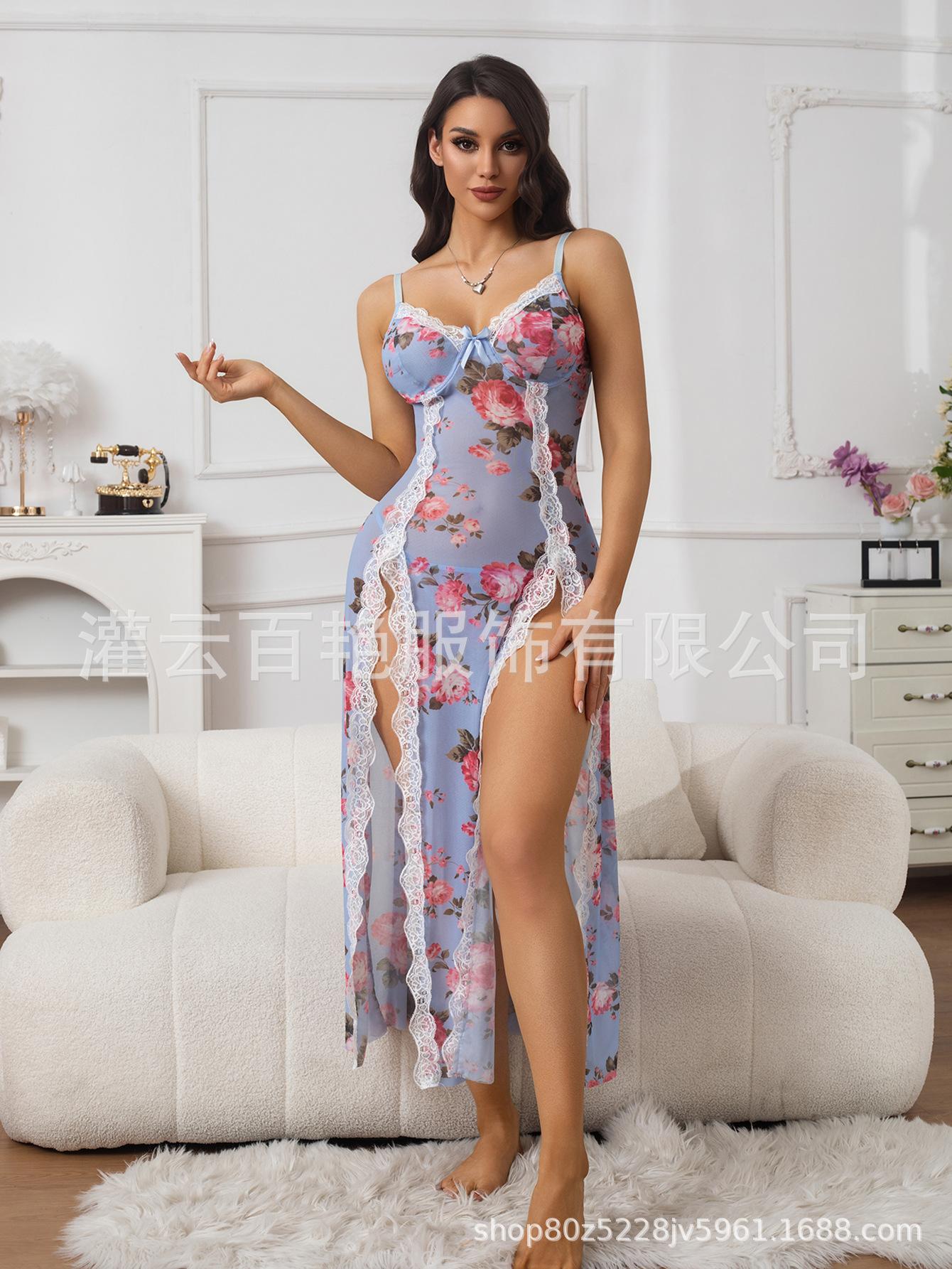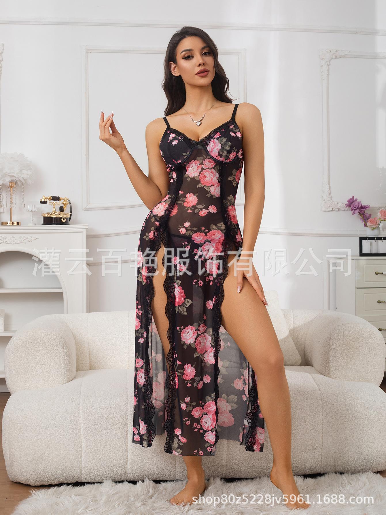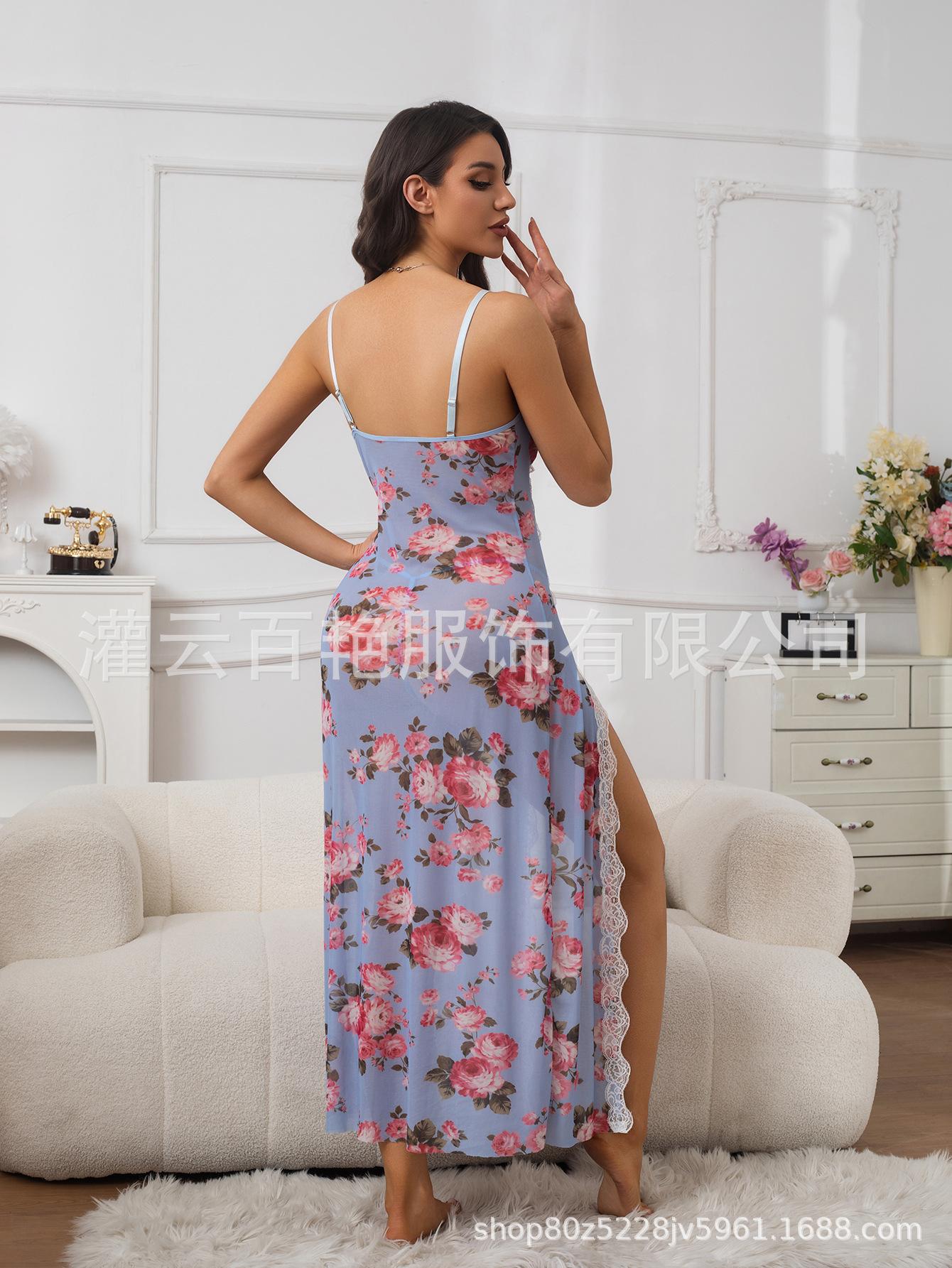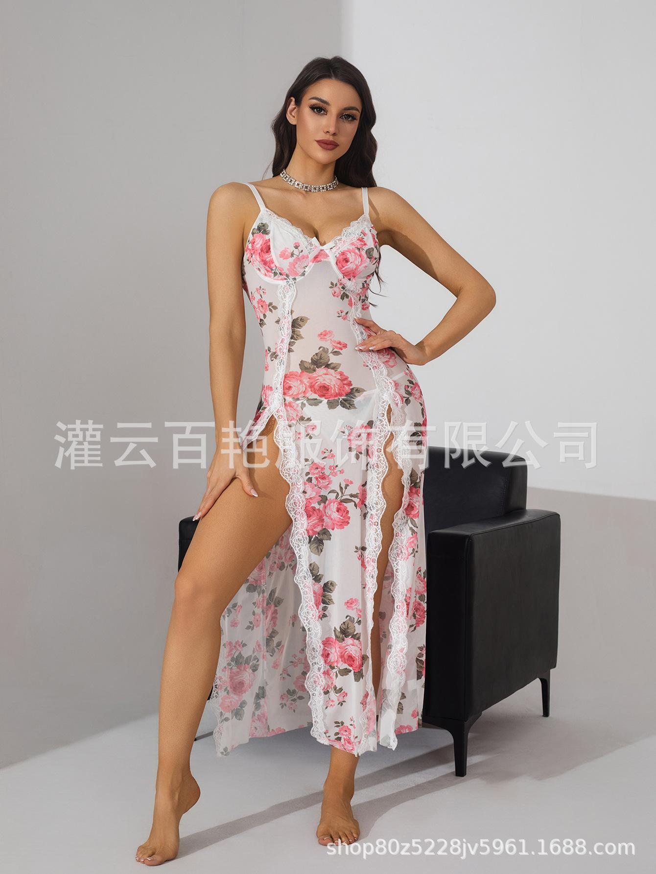 Fornecimento Transfronteiriço Saia Suspender Estampa de Leopardo Popular Europeia e Americana Renda Conjunto Sexy Casa Pijama Suspender Longo