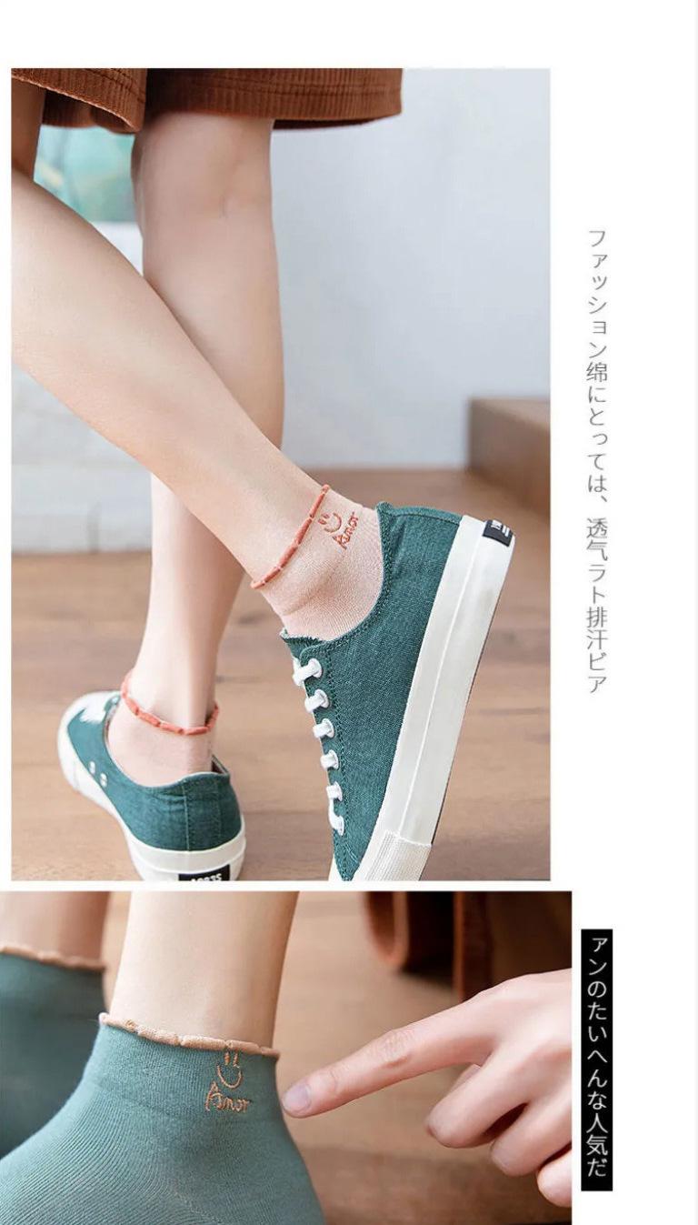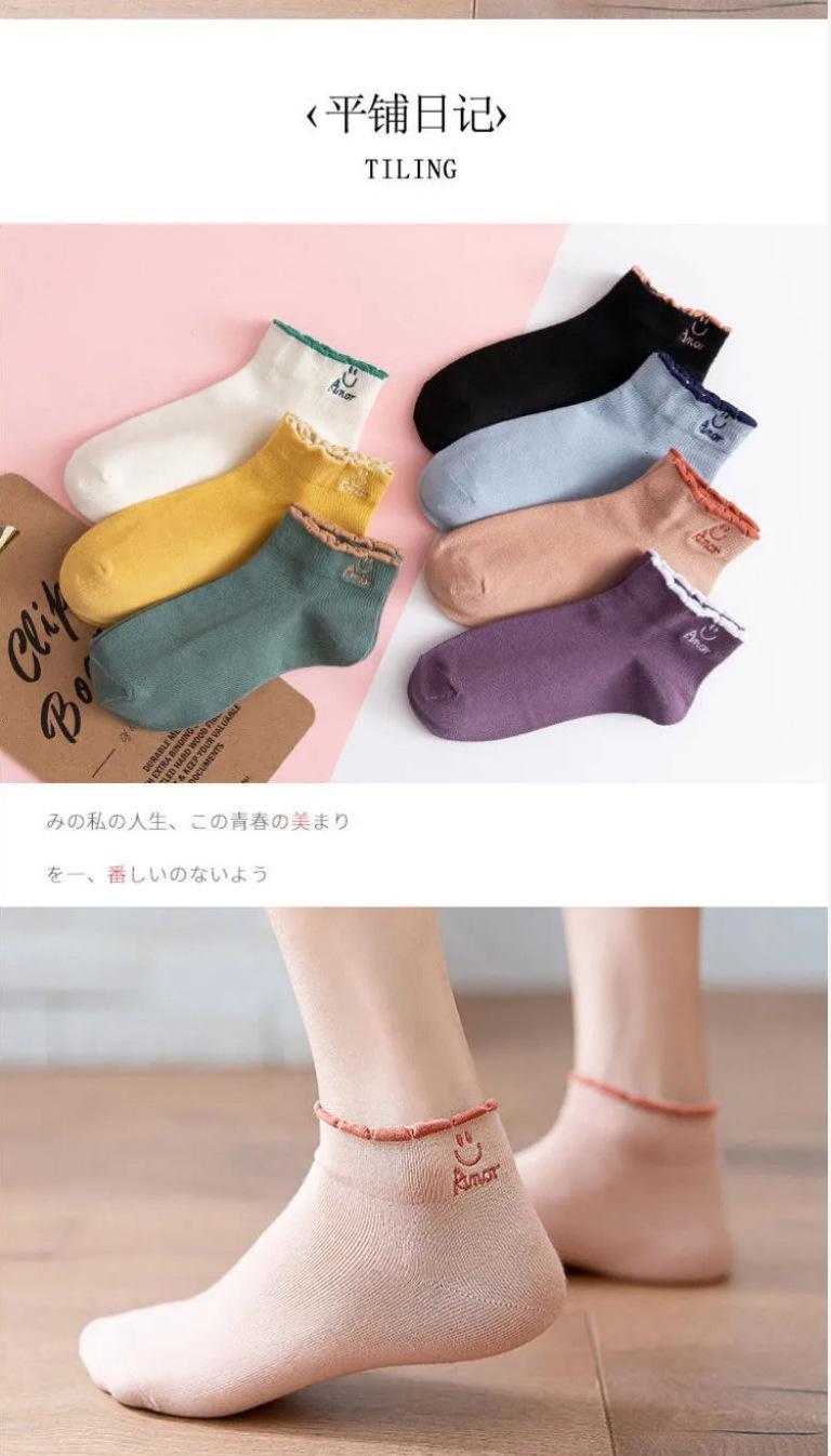 Compre Meias femininas versão coreana de meias soquete de cor sólida meias femininas curtas meias de algodão finas invisíveis femininas rasas com renda meias com carinha sorridente atacado no atacado no Joom.pro