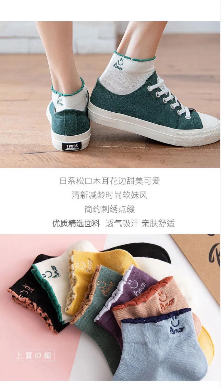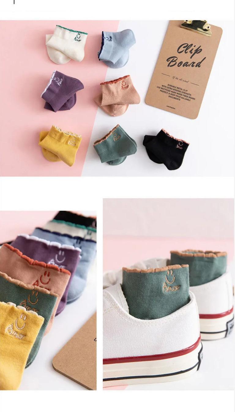 Meias femininas versão coreana de meias soquete de cor sólida meias femininas curtas meias de algodão finas invisíveis femininas rasas com renda meias com carinha sorridente atacado