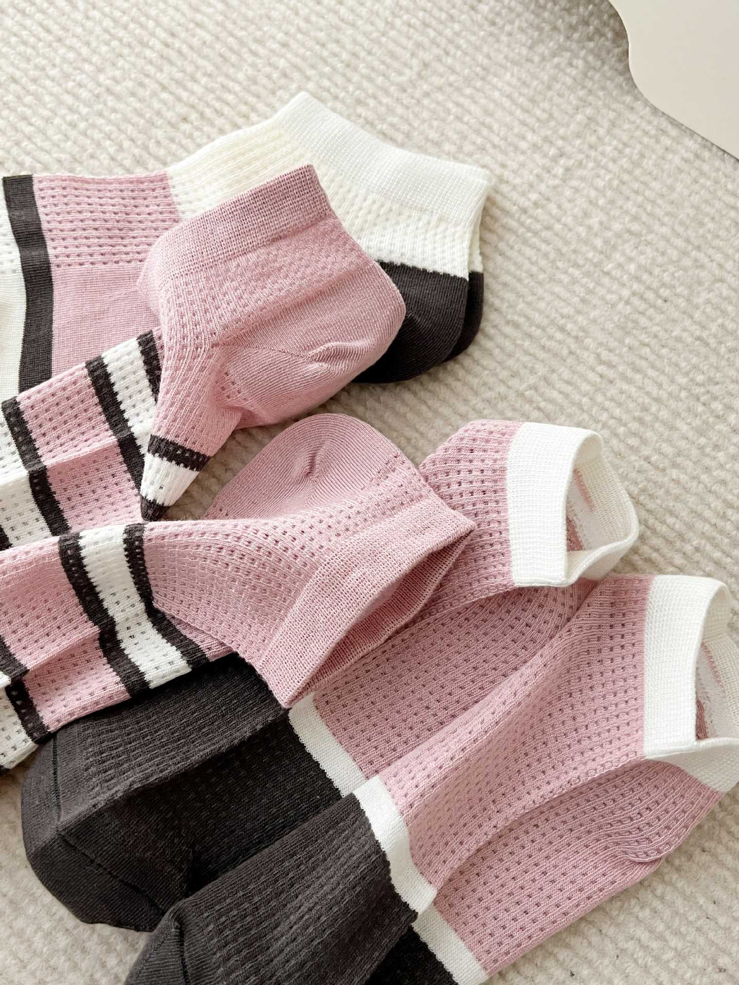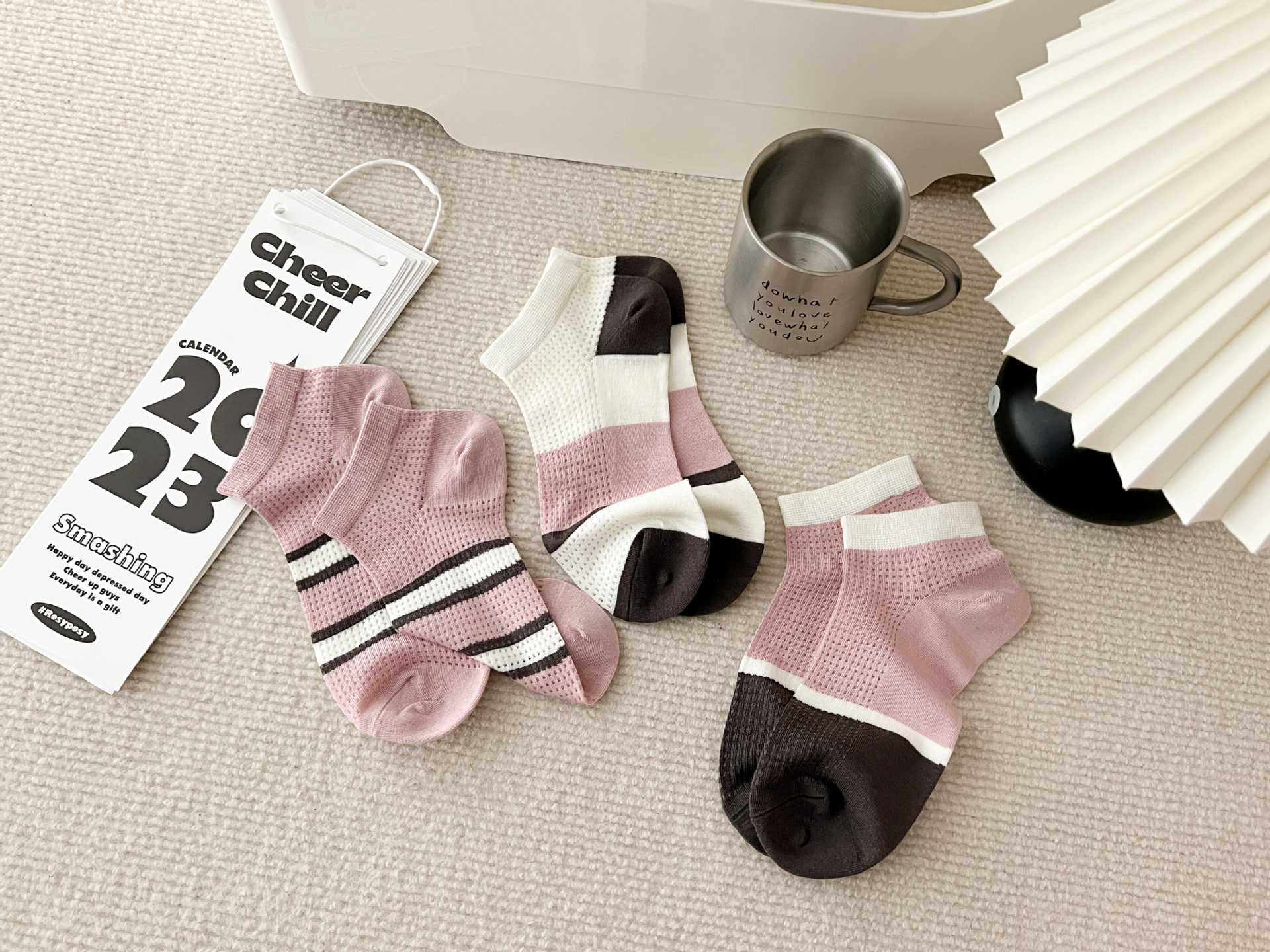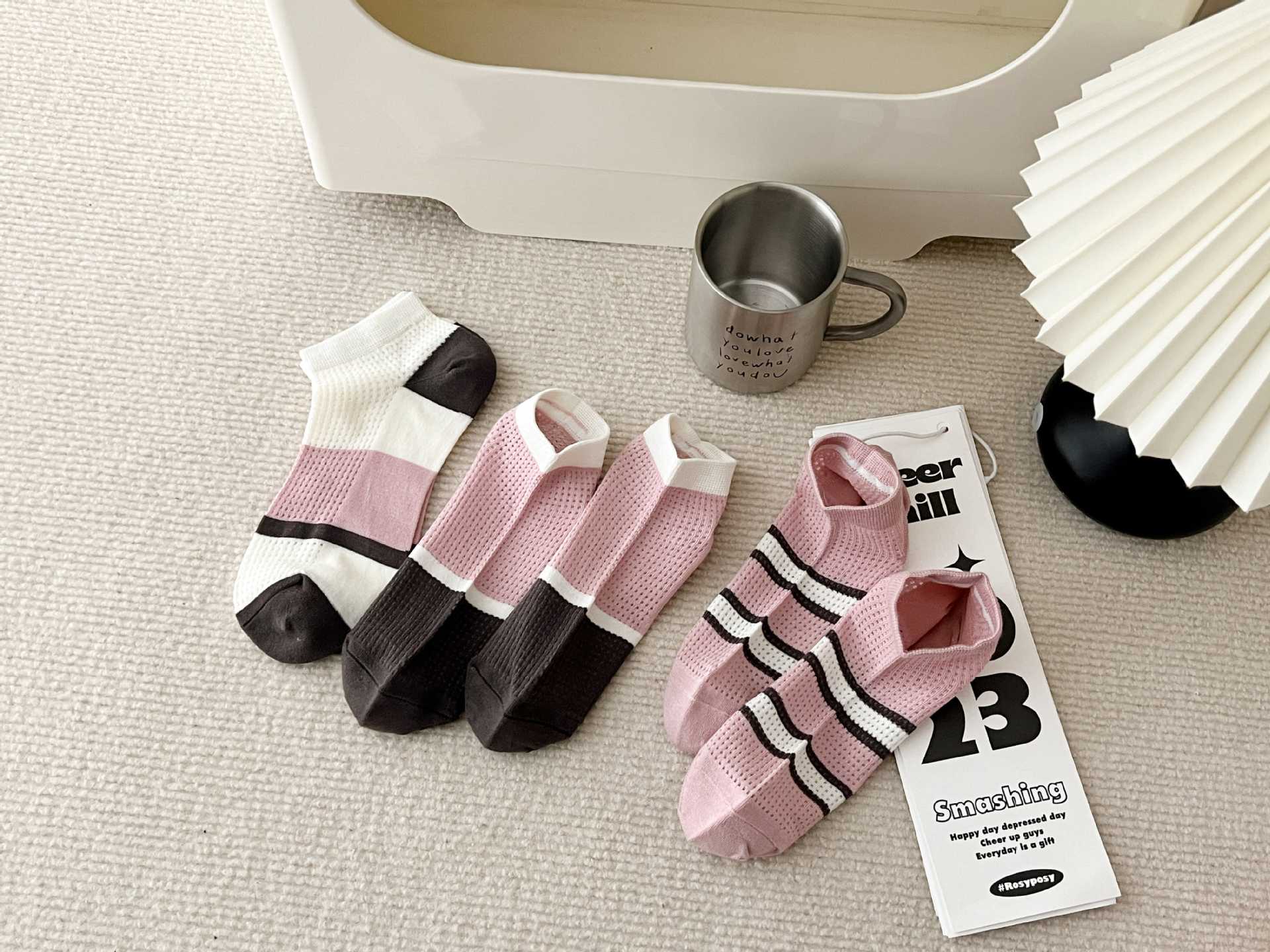 Meias de Rede para Mulheres, Algodão de Bambu Rosa, Versátil, Desodorante, Confortável, Casual, Versátil, Cano Baixo, Fashion, Antiderrapante, Não Caem
