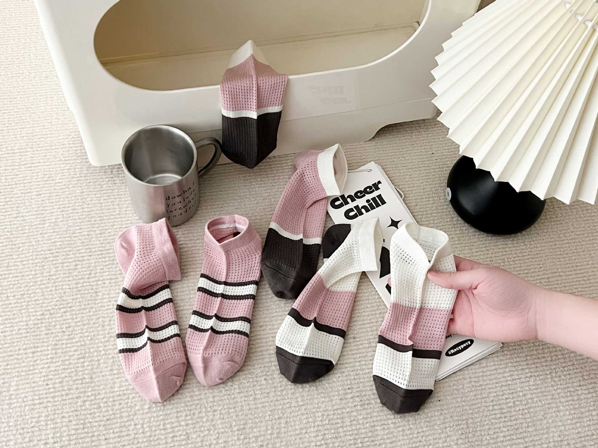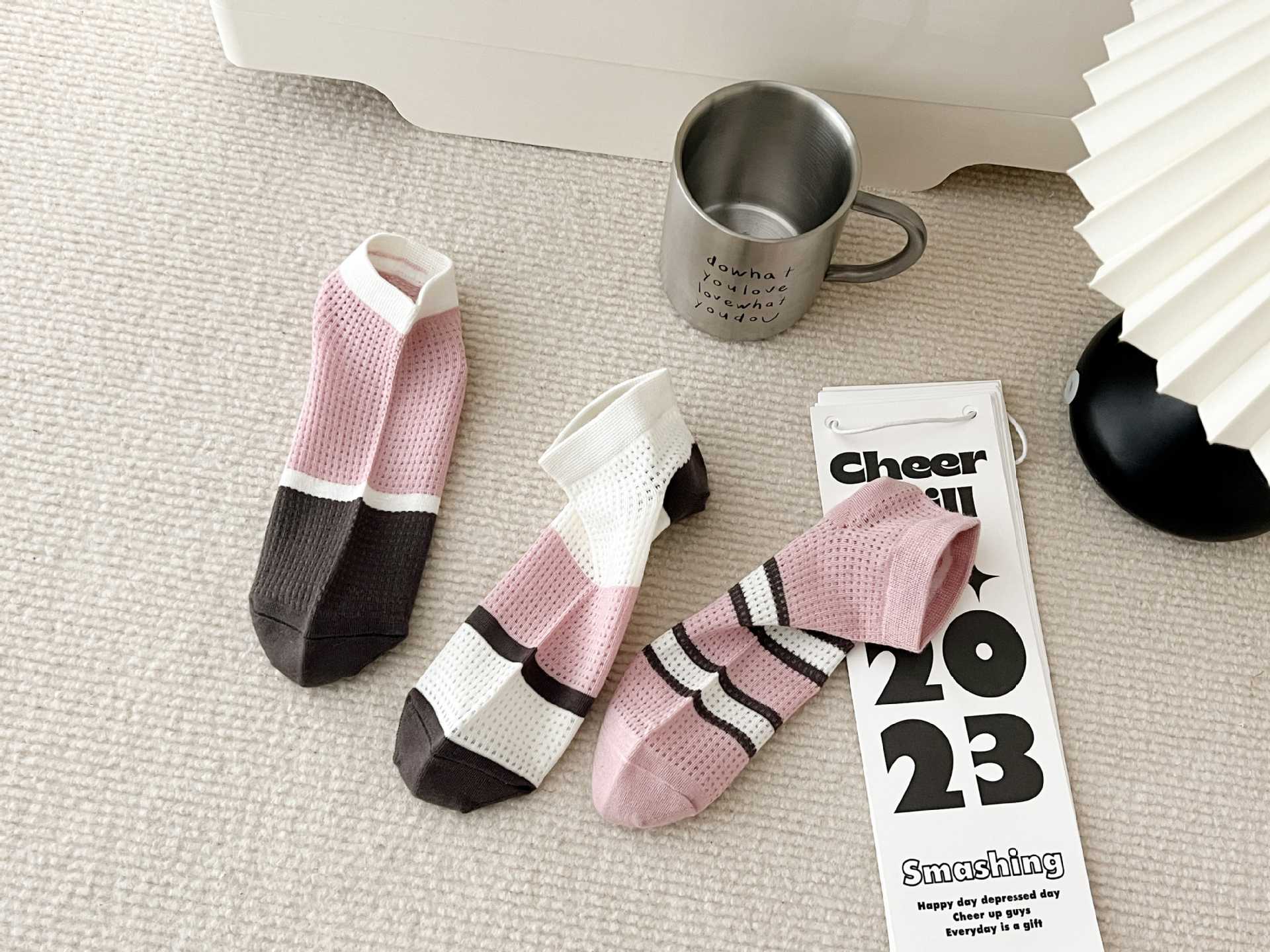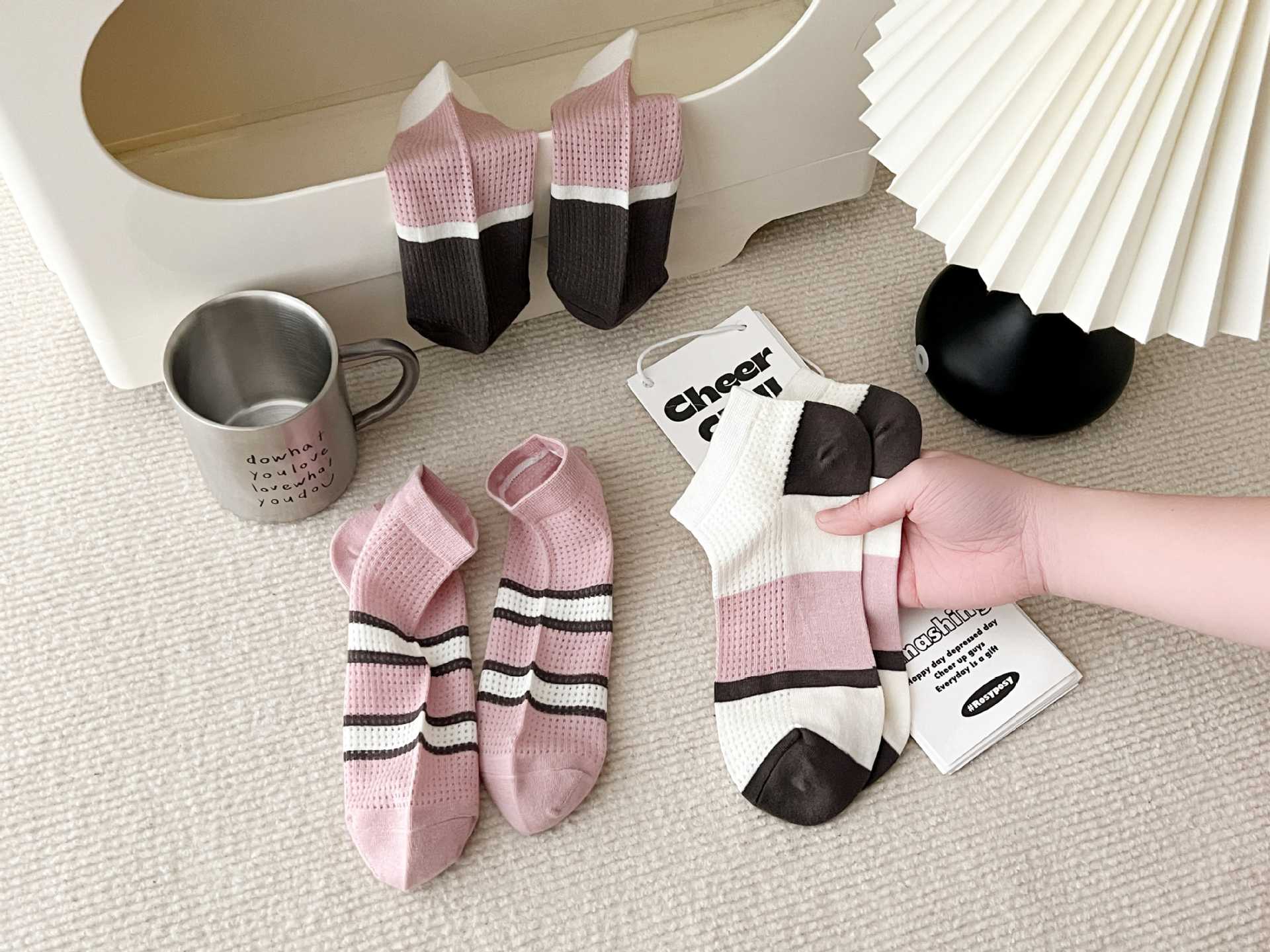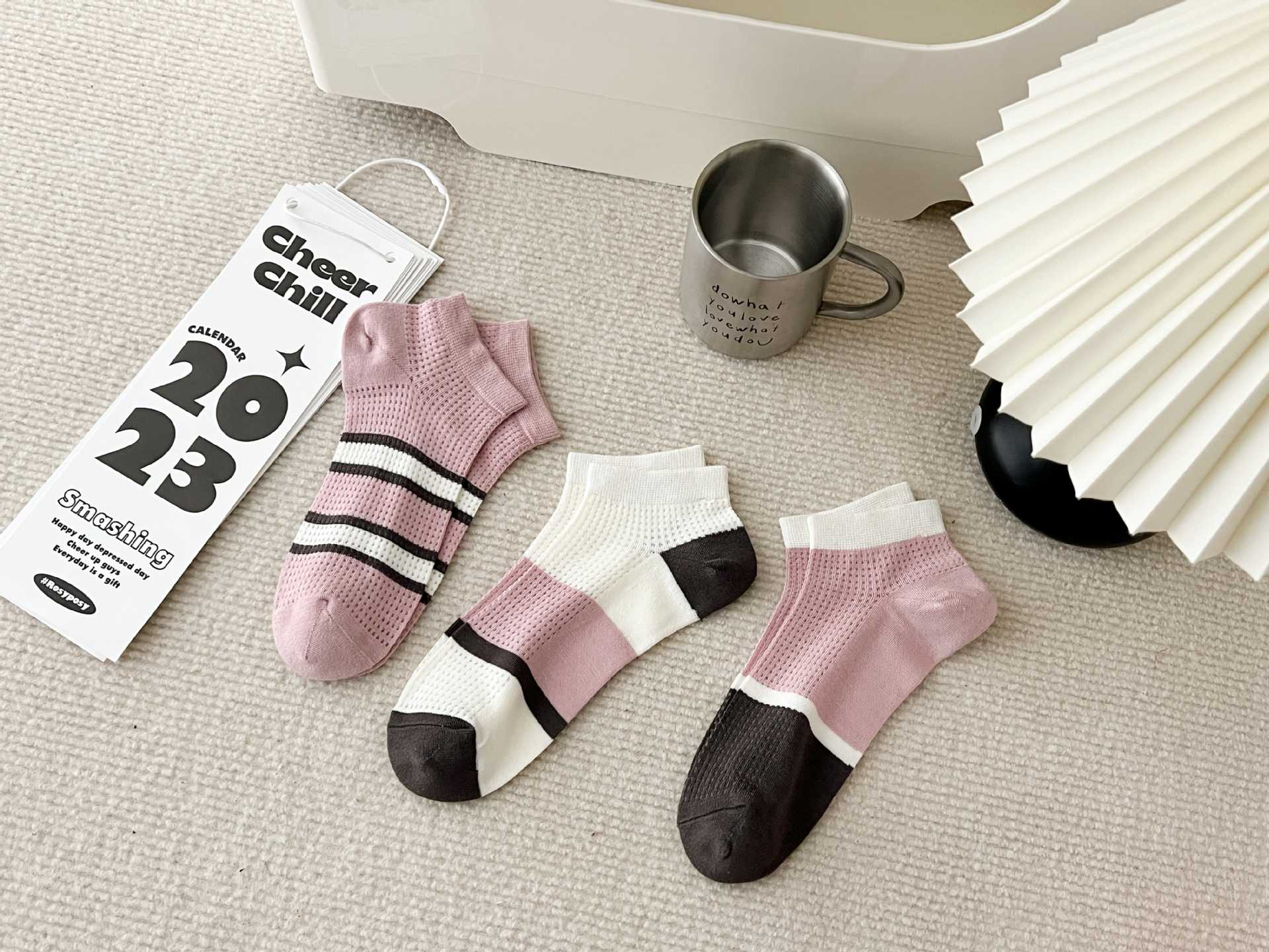 Meias de Rede para Mulheres, Algodão de Bambu Rosa, Versátil, Desodorante, Confortável, Casual, Versátil, Cano Baixo, Fashion, Antiderrapante, Não Caem