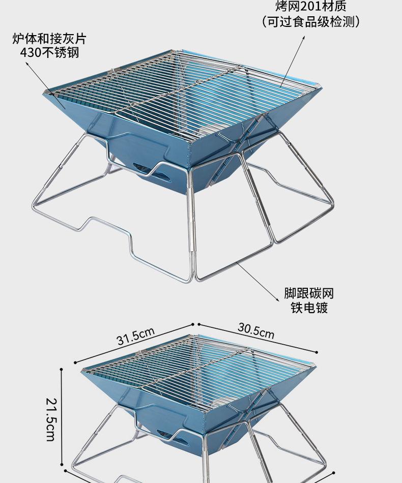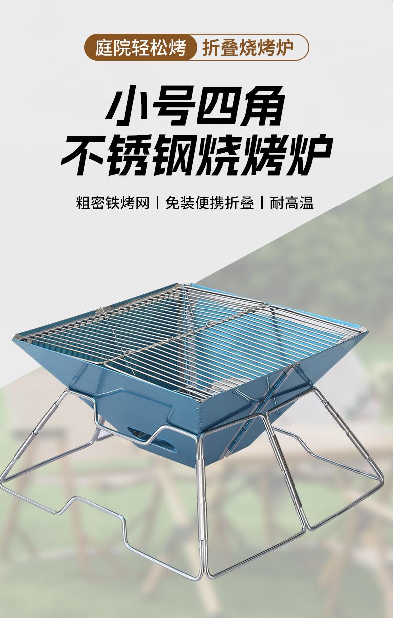 Pequeno Aço Inoxidável Quatro Cantos Portátil Dobrável Personalizado Churrasqueira Dividida para Camping ao Ar Livre Churrasqueira Atacado