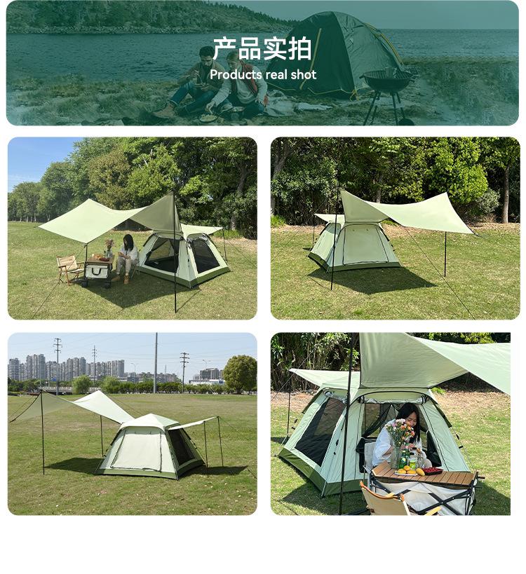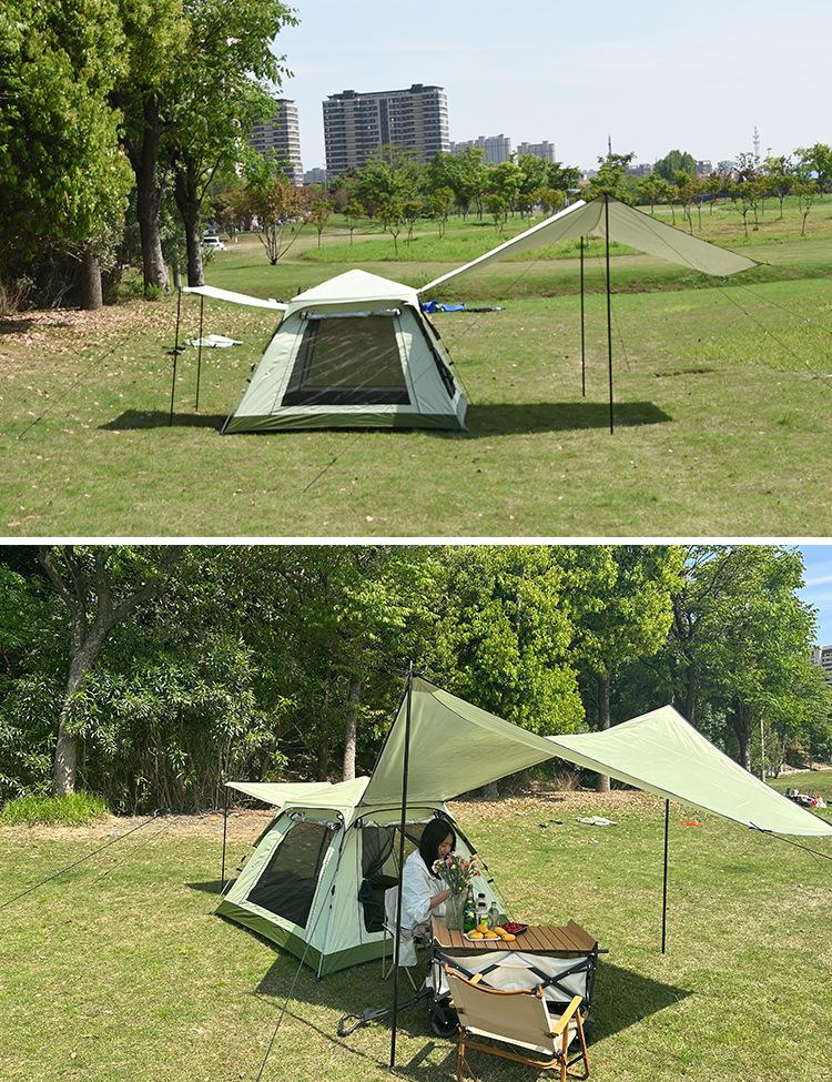 Toldo Tenda Externa Dois-Em-Um Estilo Camping 3-4 Pessoas Totalmente Automático Toldo de Parque Equipamento Externo de Abertura Rápida Gratuita