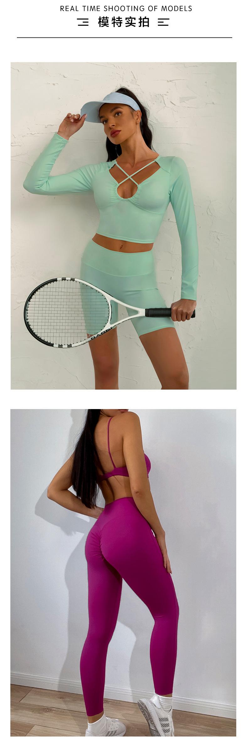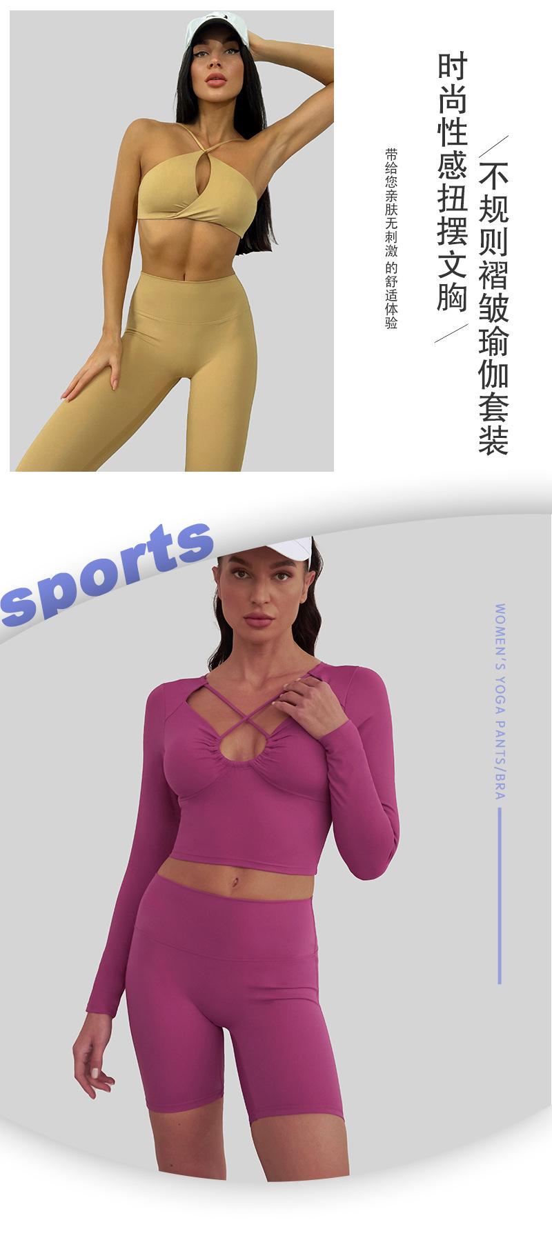 Roupa de Yoga Justa Europeia e Americana Roupa de Yoga para Corrida e Fitness Feminina Novo Lote Pequeno Sutiã Calças de Yoga Plissadas