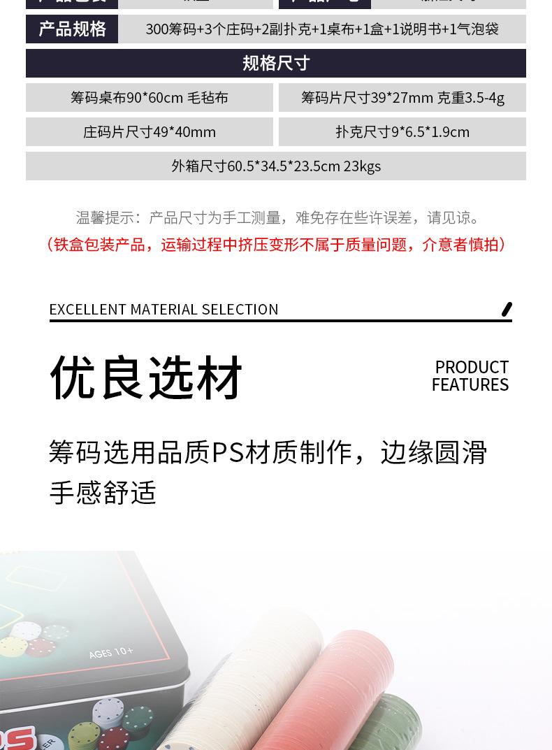 300 peças Texas Poker 21 pontos caixa de ferro fichas naipe 300 fichas + código Zhuang + pôquer + toalha de mesa + caixa