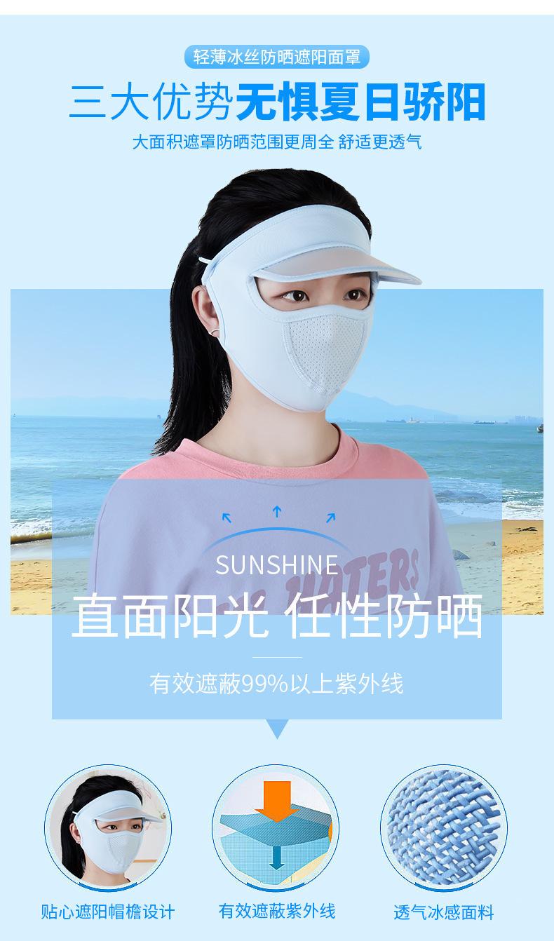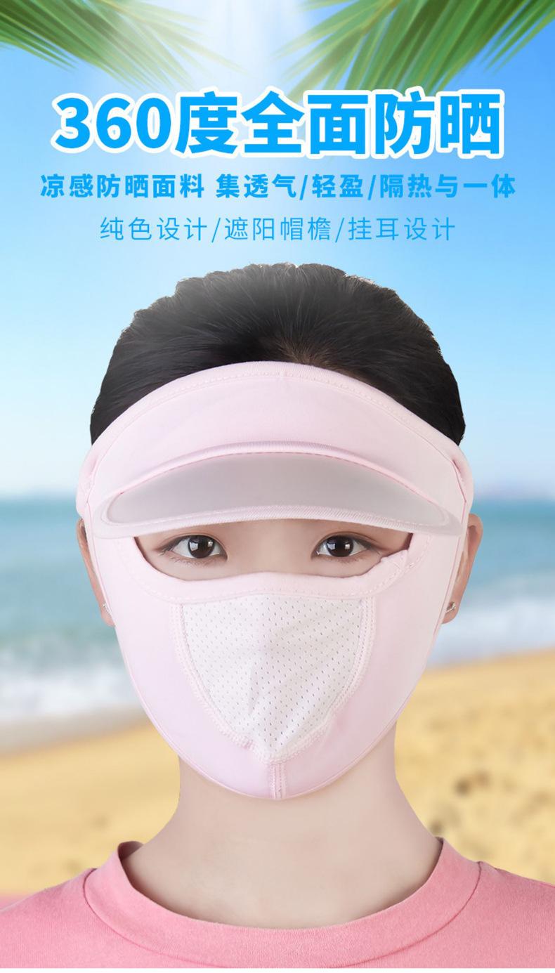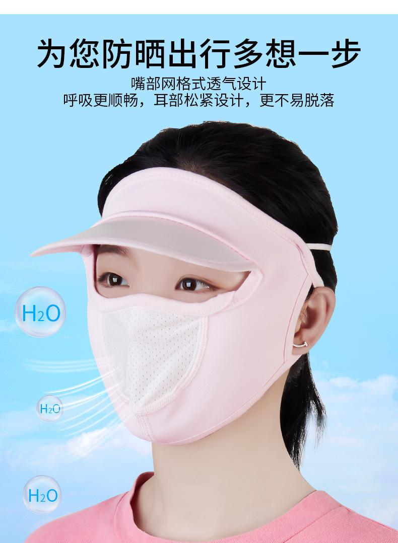Máscara Facial Integrada com Aba Larga para Ciclismo ao Ar Livre, Fitness, Proteção Solar, Quebra-Sol, Anti-UV, Respirável, Máscara de Seda Gelo