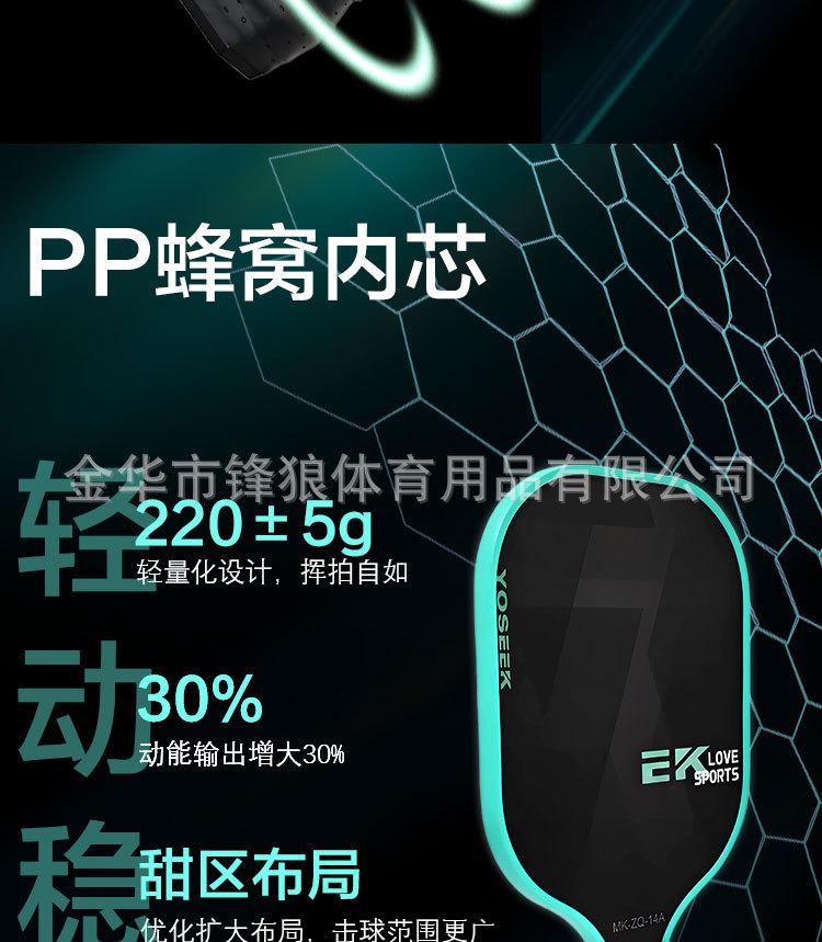 Raquete de Pickleball Popular Fibra de Vidro Pickleball Competição Profissional Treino Raquete Elegante Raquete de Pickleball