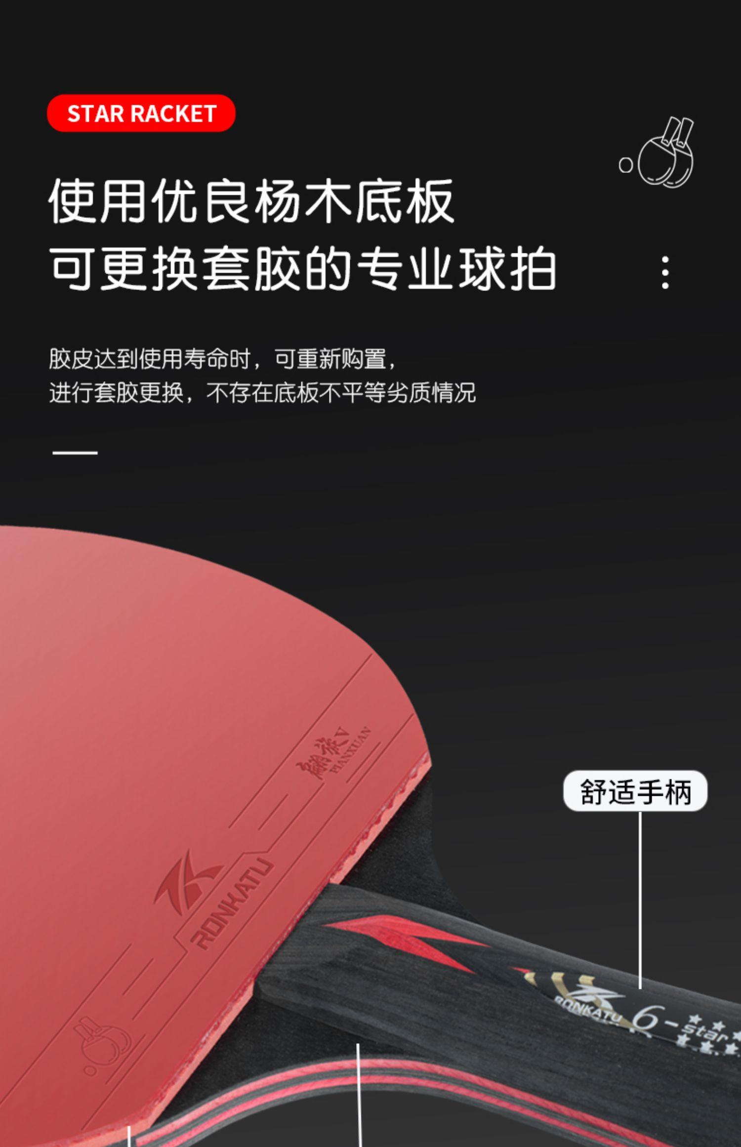 1 6-star short-handled pen-hold shooting [black and red blade + spinning v rubber + weight about 210 grams]