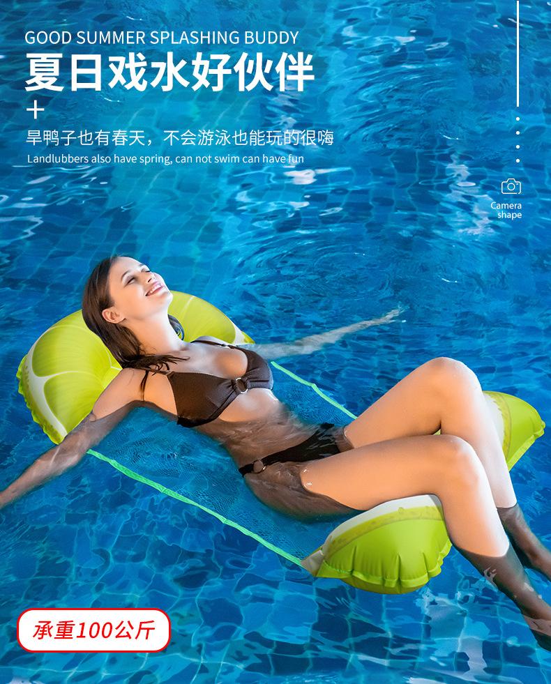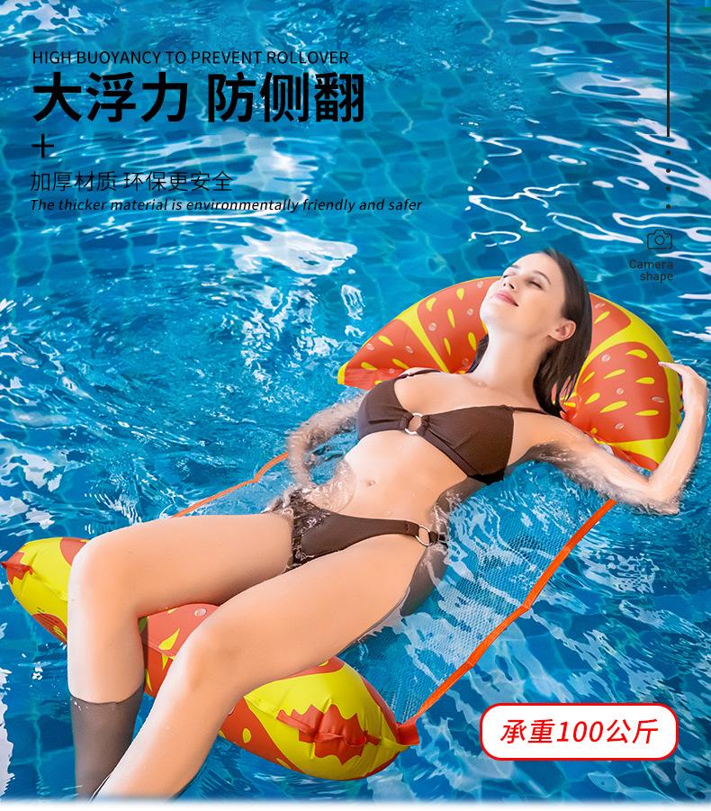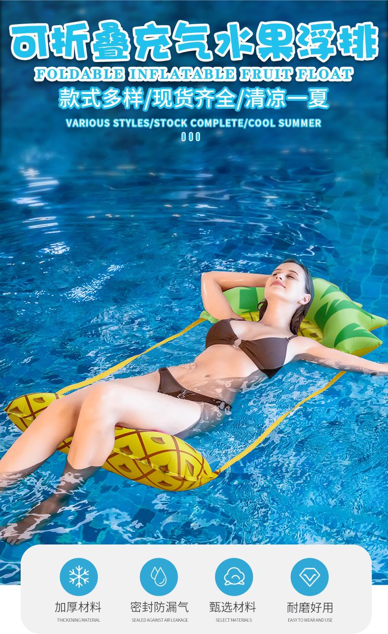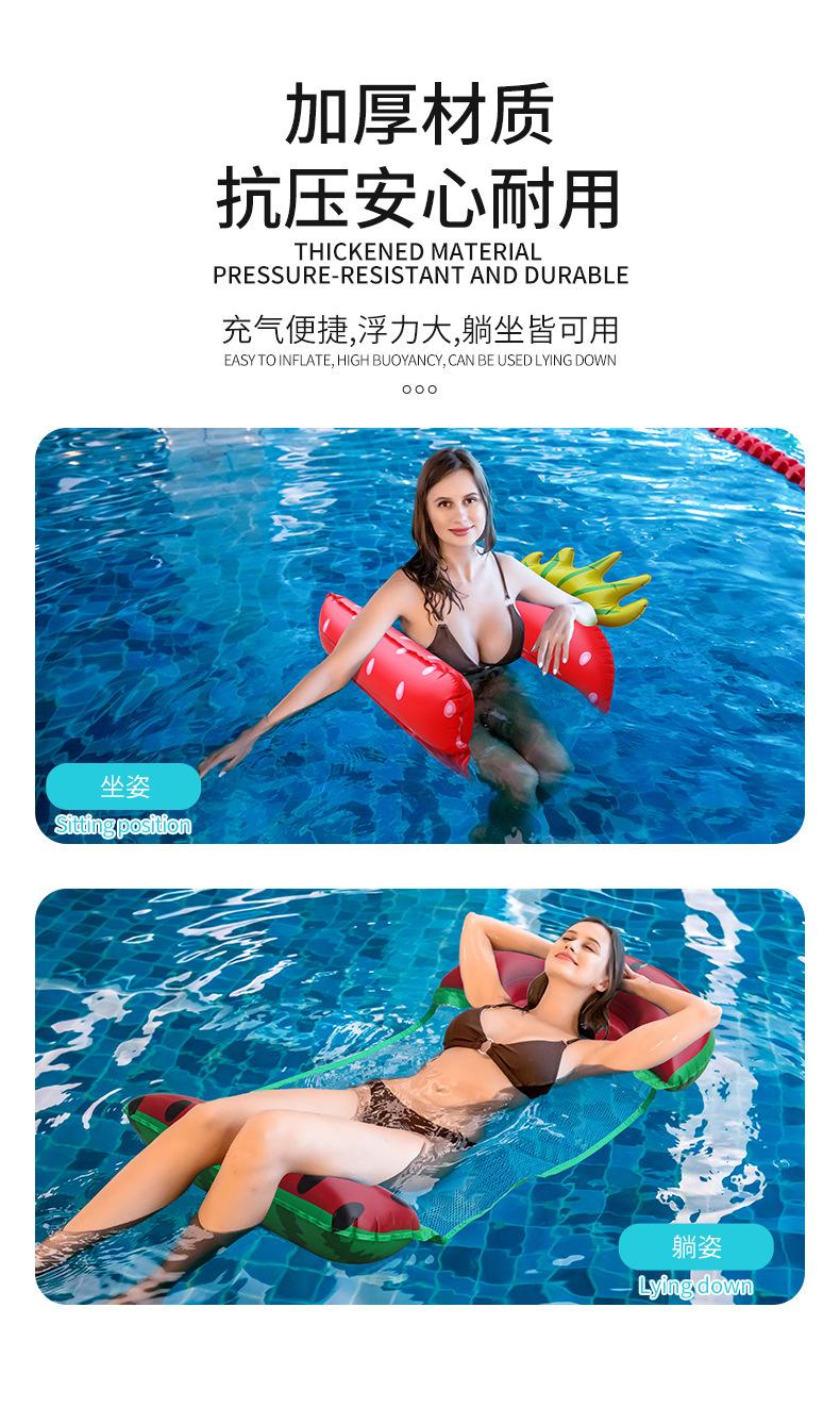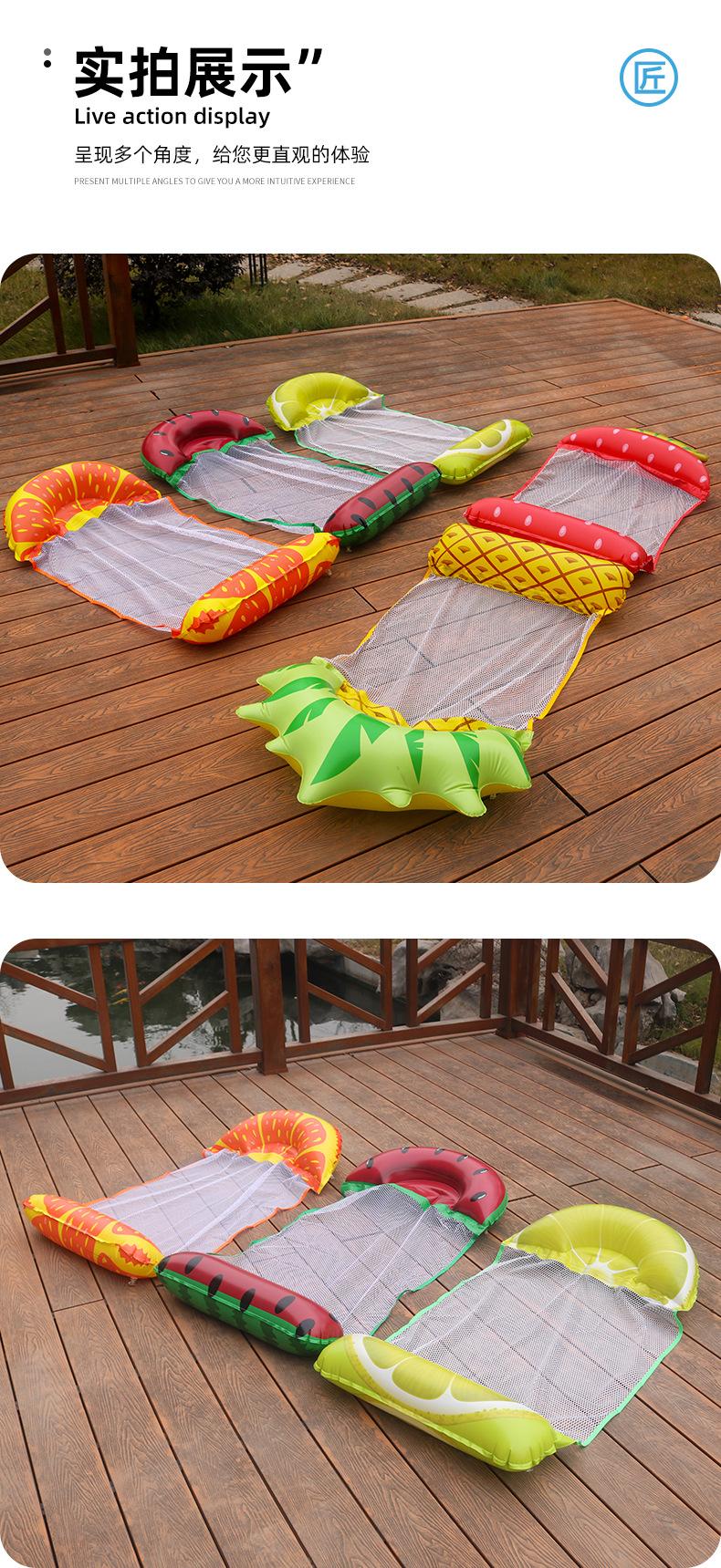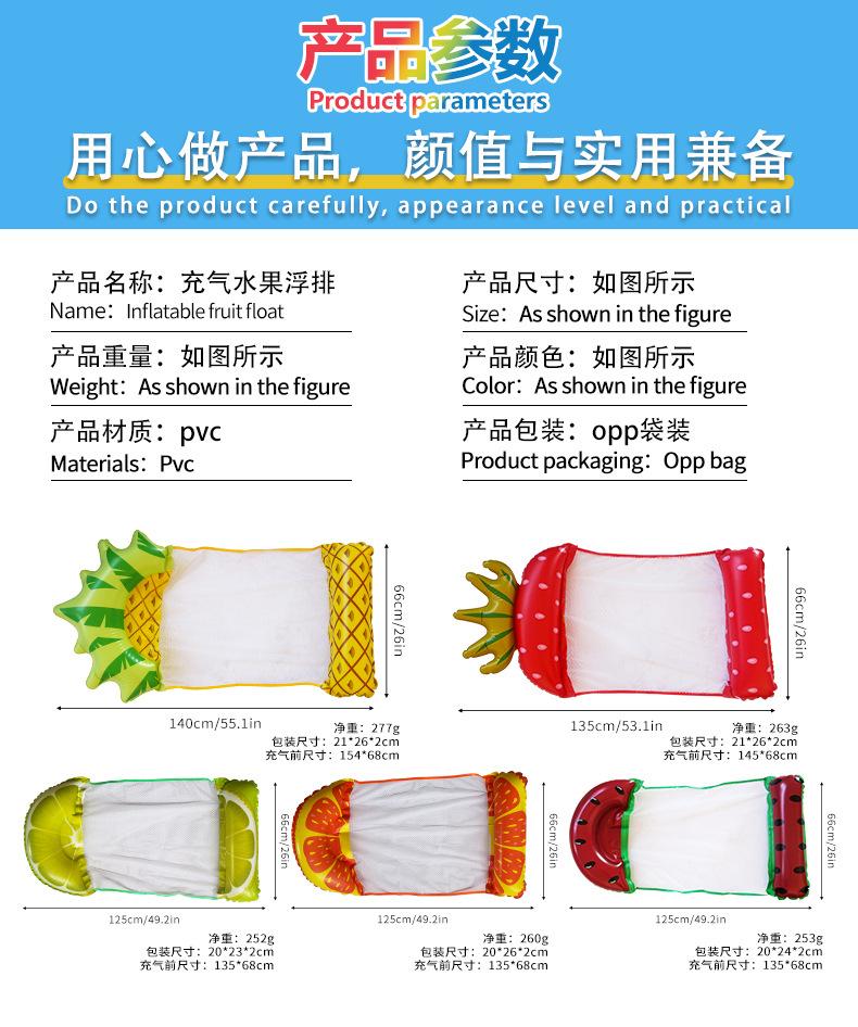 Bóia inflável de água transfronteiriça em estoque melancia rede inflável abacaxi laranja cama flutuante inflável reclinável morango cama de água