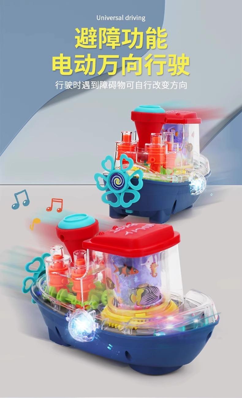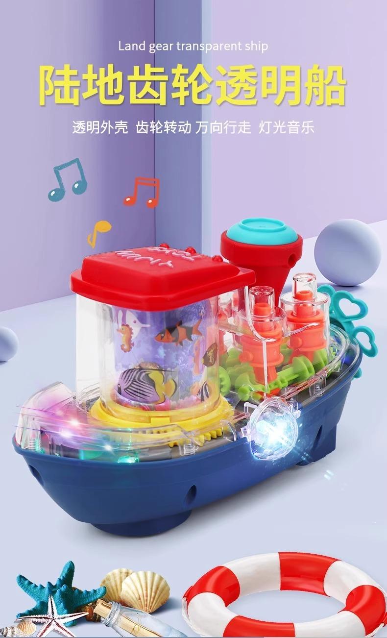 Agite o mesmo carro de brinquedo infantil universal elétrico transparente de engrenagem barco terrestre luz música barraca transfronteiriça atacado