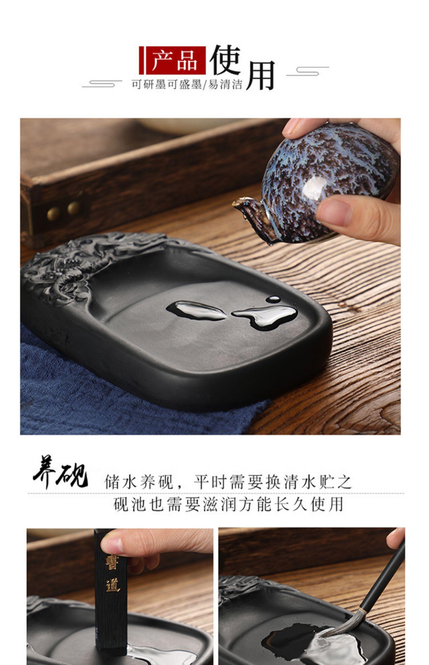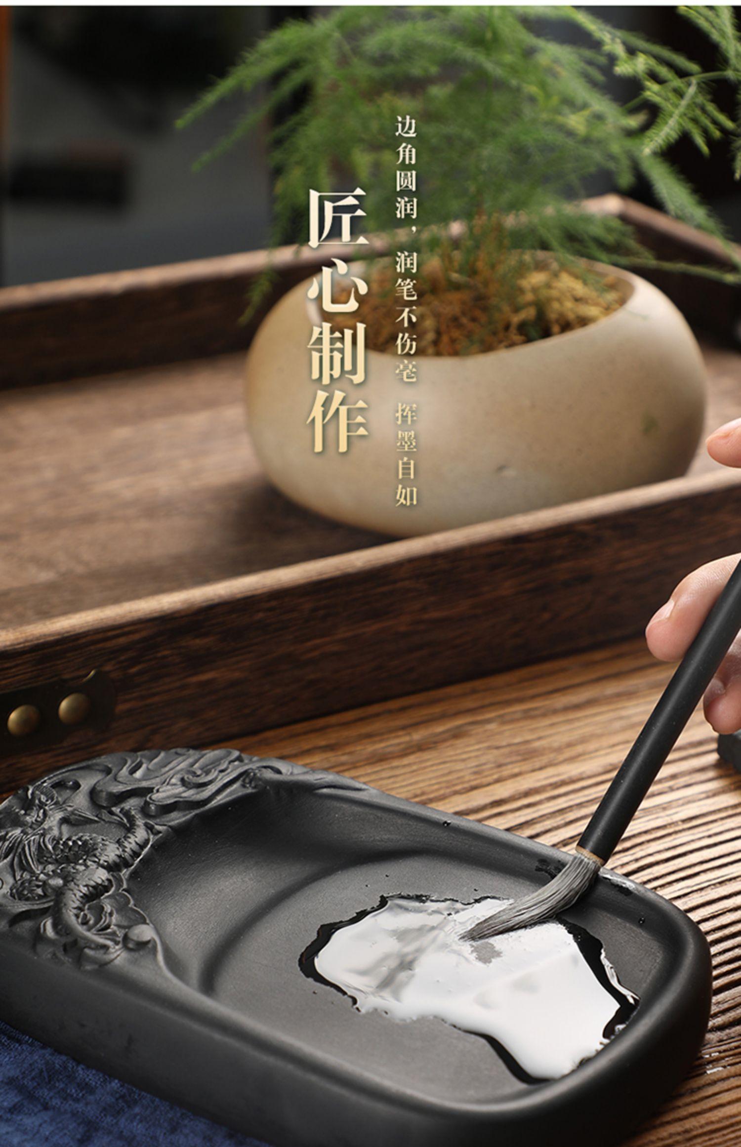 Cao Yige Tinteiro de Argila Cheng Tinteiro Natural Quatro Tinteiros Famosos Tinteiro Dian Tinteiro Duan Quatro Tesouros do Estudo Adulto Estudante Multifuncional Livro
