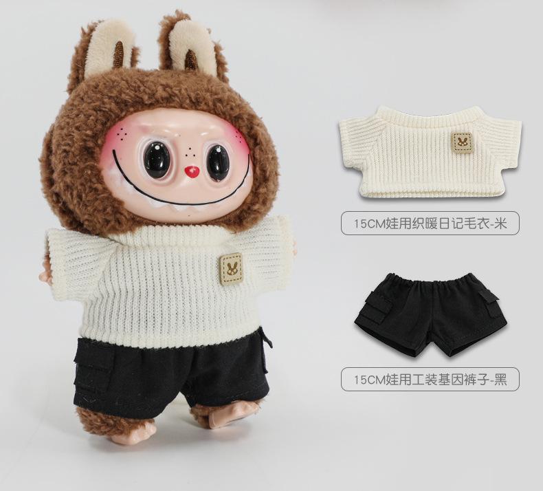 Acessórios de roupas de boneca de 20cm troca roupas de boneca roupas labubu suéter macacão terno roupas de boneca de algodão