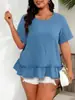 Amazon Exportação Transfronteiriça Europeia e Americana 2025 Primavera e Verão Novas Blusas Femininas da Moda com Babados e Manga Curta de Gola Redonda