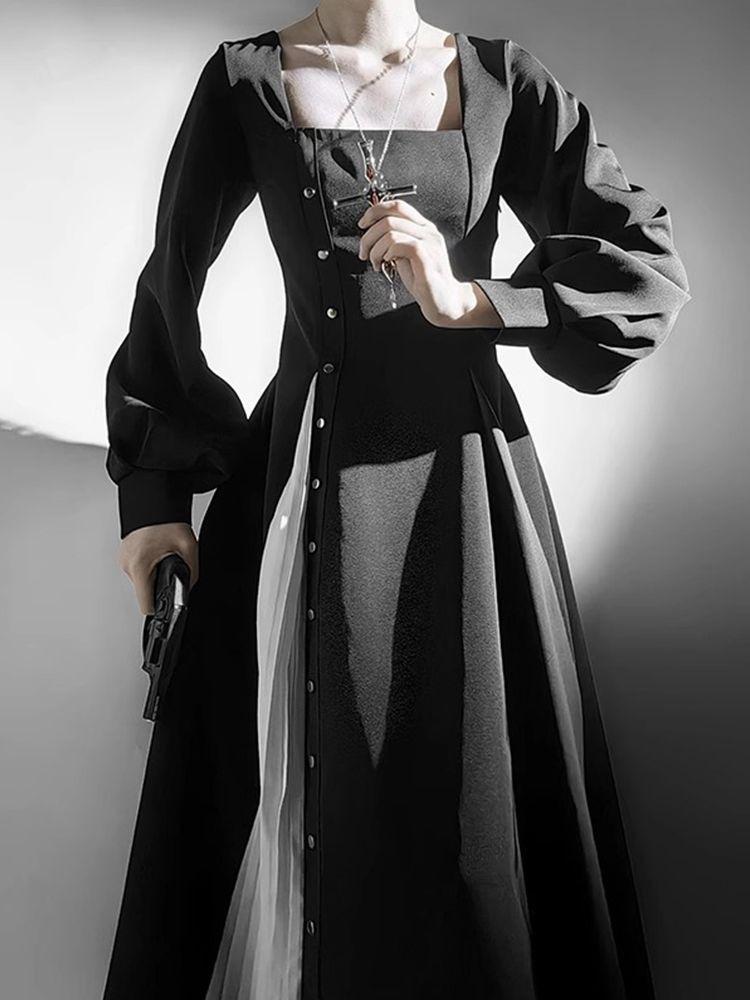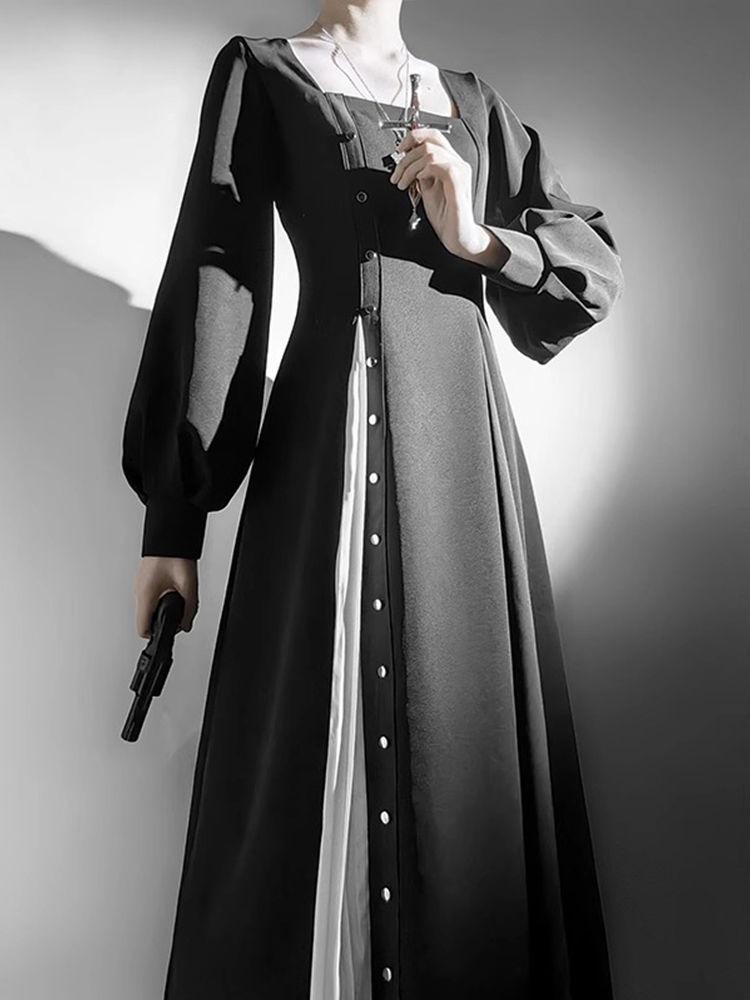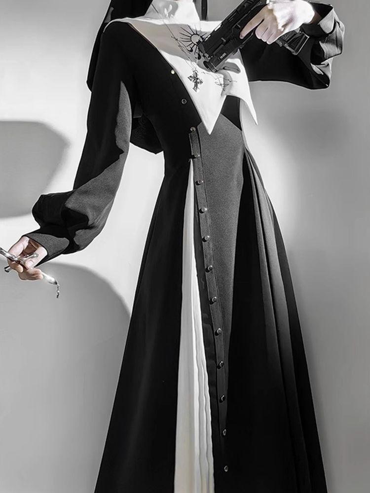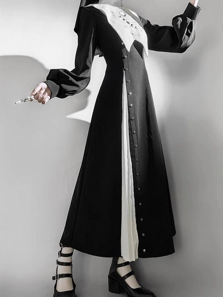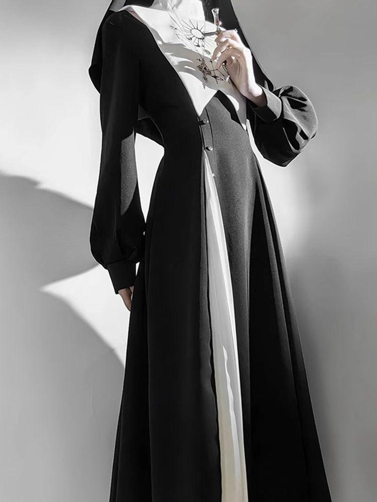 Vestido Lolita Gótico Dark Preto e Branco Freira Lolita Diário Fantasia de Halloween Cos Suit