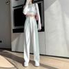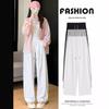 Calças casuais soltas brancas verão feminino novas calças dape de cintura alta algodão reto fino calças de perna larga finas