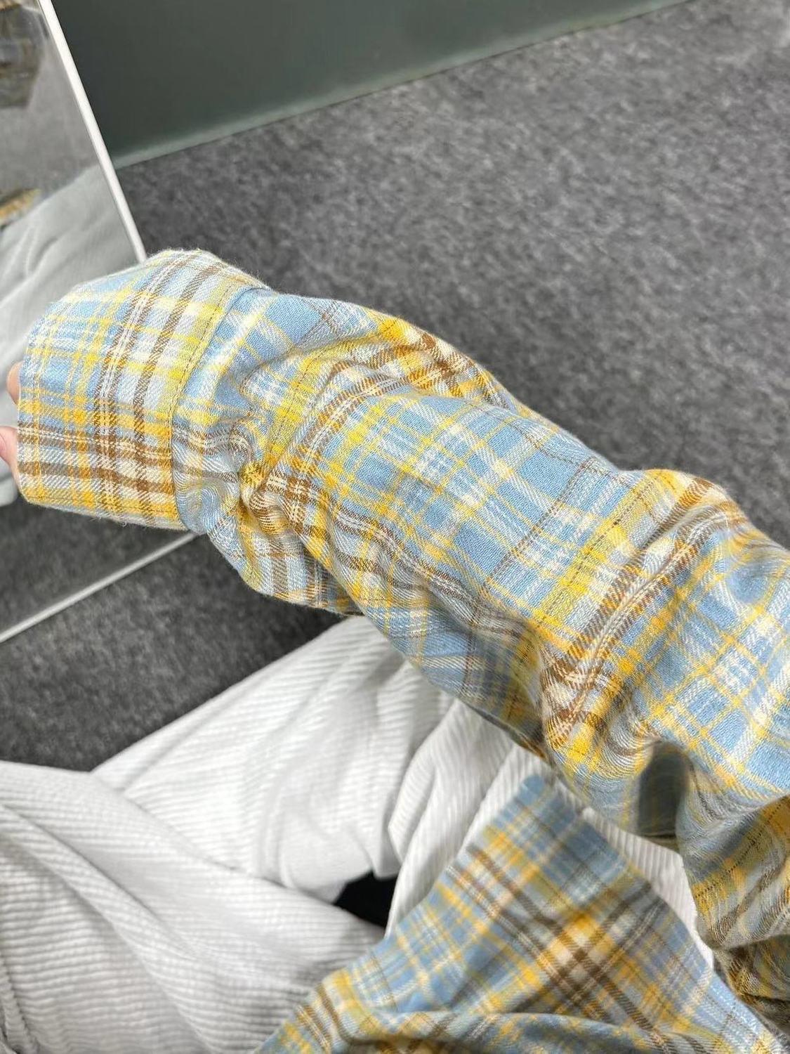 Camisa Retrô Americana de Manga Comprida 2025 Primavera Nova Casual Moderna Marca Xadrez Solta Versátil Camisa Jaqueta Top