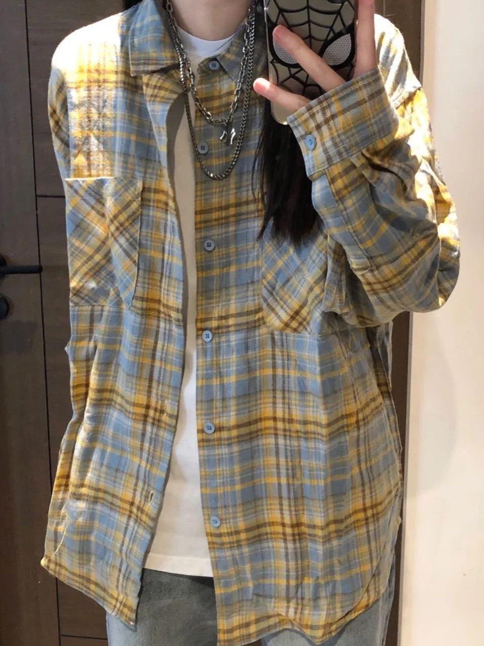 Compre Camisa Retrô Americana de Manga Comprida 2025 Primavera Nova Casual Moderna Marca Xadrez Solta Versátil Camisa Jaqueta Top no atacado no Joom.pro