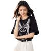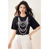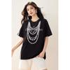2025 Nova Roupa Feminina Estilo Americano Estampa de Pérolas Camiseta de Manga Curta Feminina Verão Retrô Solta Versátil Top